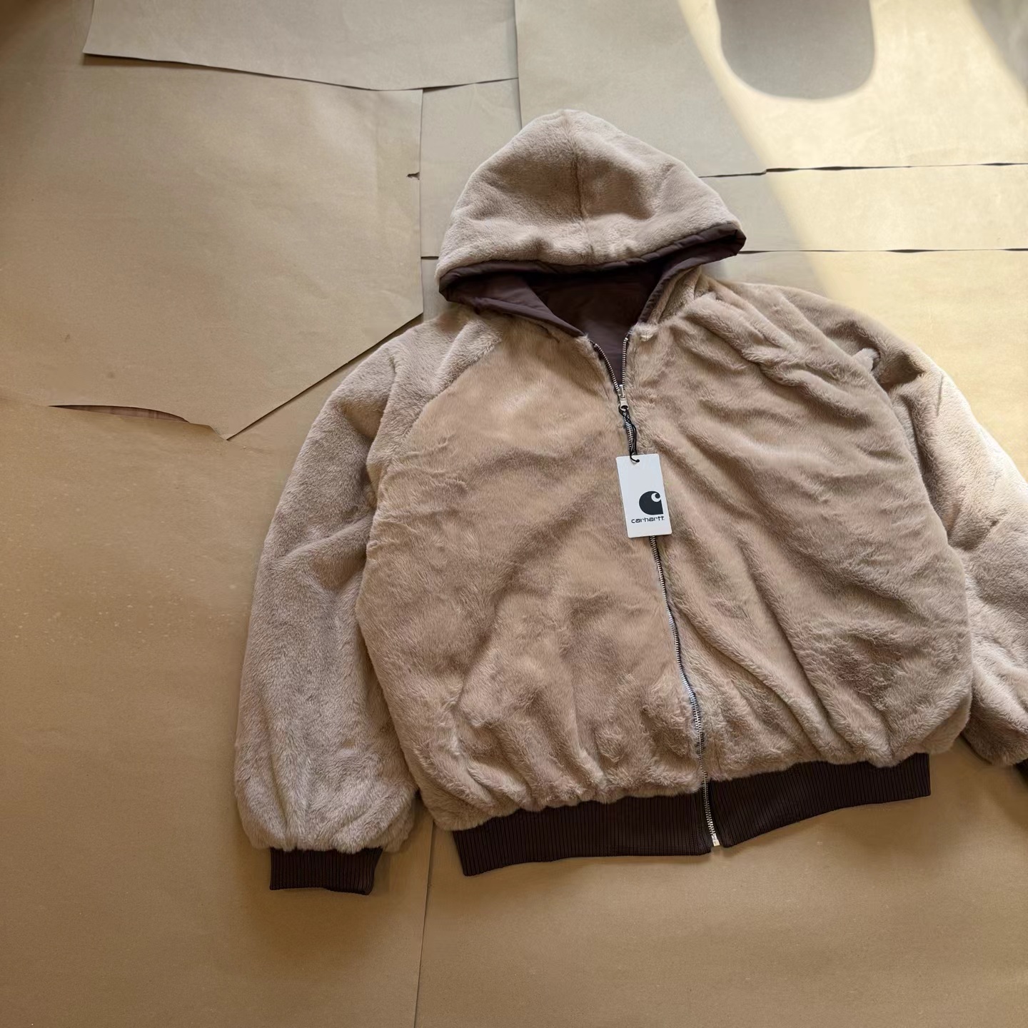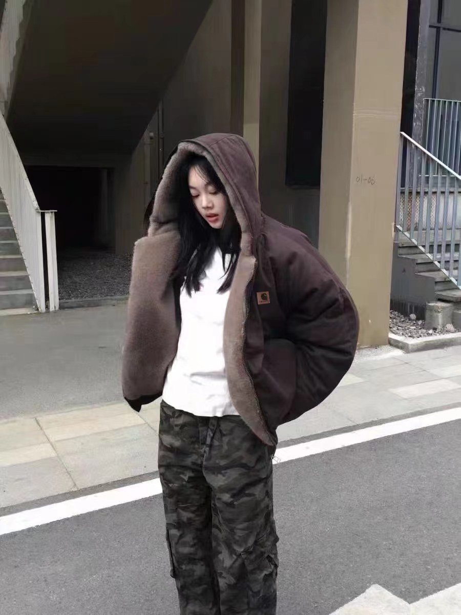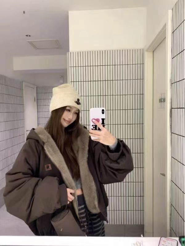 复古仿貂毛双面穿座山雕插肩连帽棉衣 加大加深的帽子超实用 一体式的仿貂毛零下也能轻松驾驭 一件面子里子都有的座山雕谁能拒绝呢 还能反过来把毛毛露在外面穿 一衣俩穿 太爱了 袖口下摆都采用高支高密的螺纹设计 防风抗寒 宽松插肩的设计 上身宽松不拘束