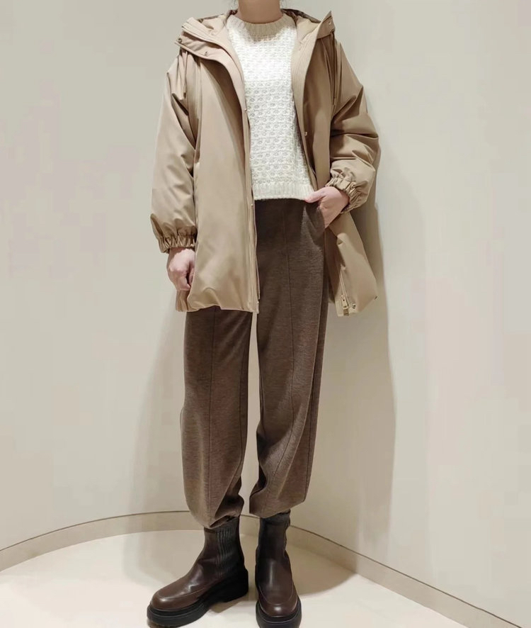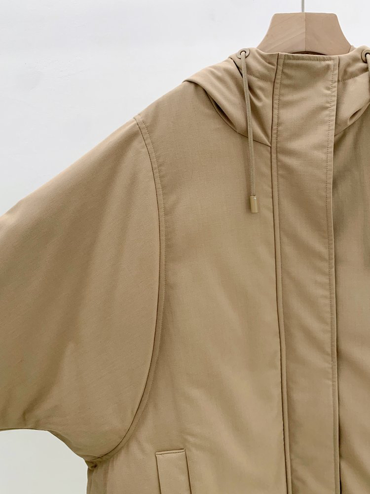 “温暖大被子”丝羊毛精纺平纹布廓形鹅绒羽绒服 独特织造技术 宽松廓形 甄选高品质白鹅绒填充 侧边按扣设计 不显臃肿