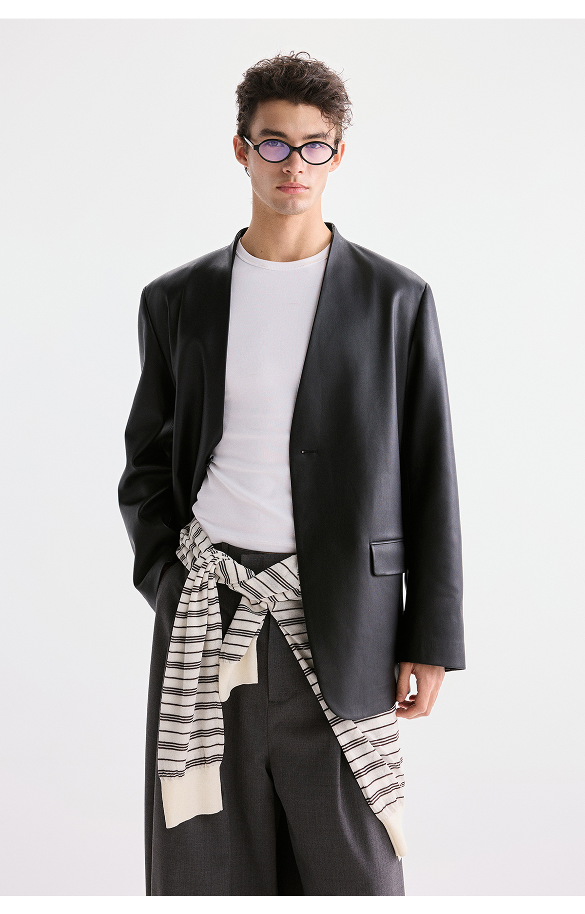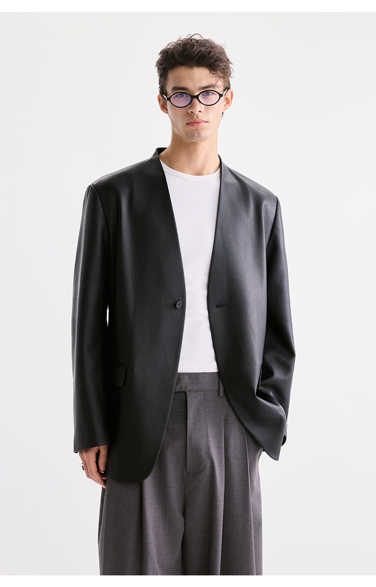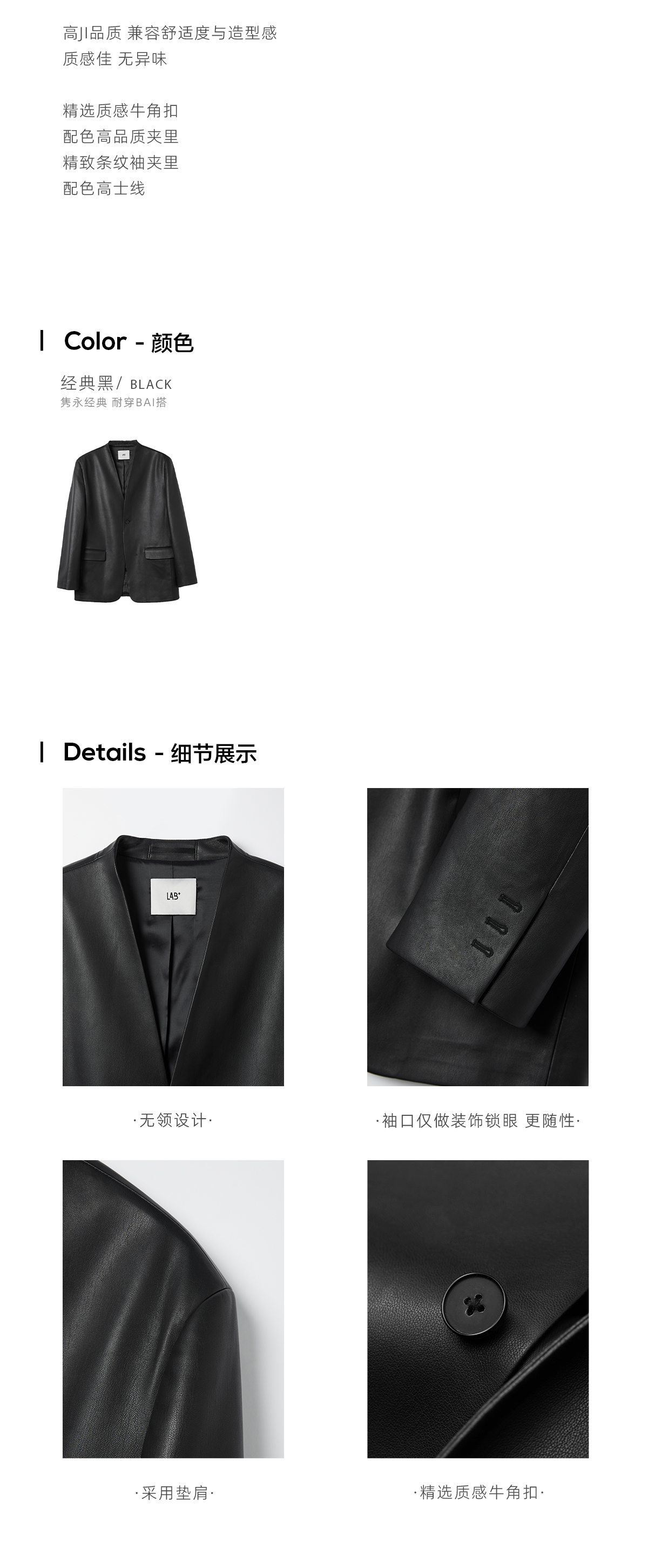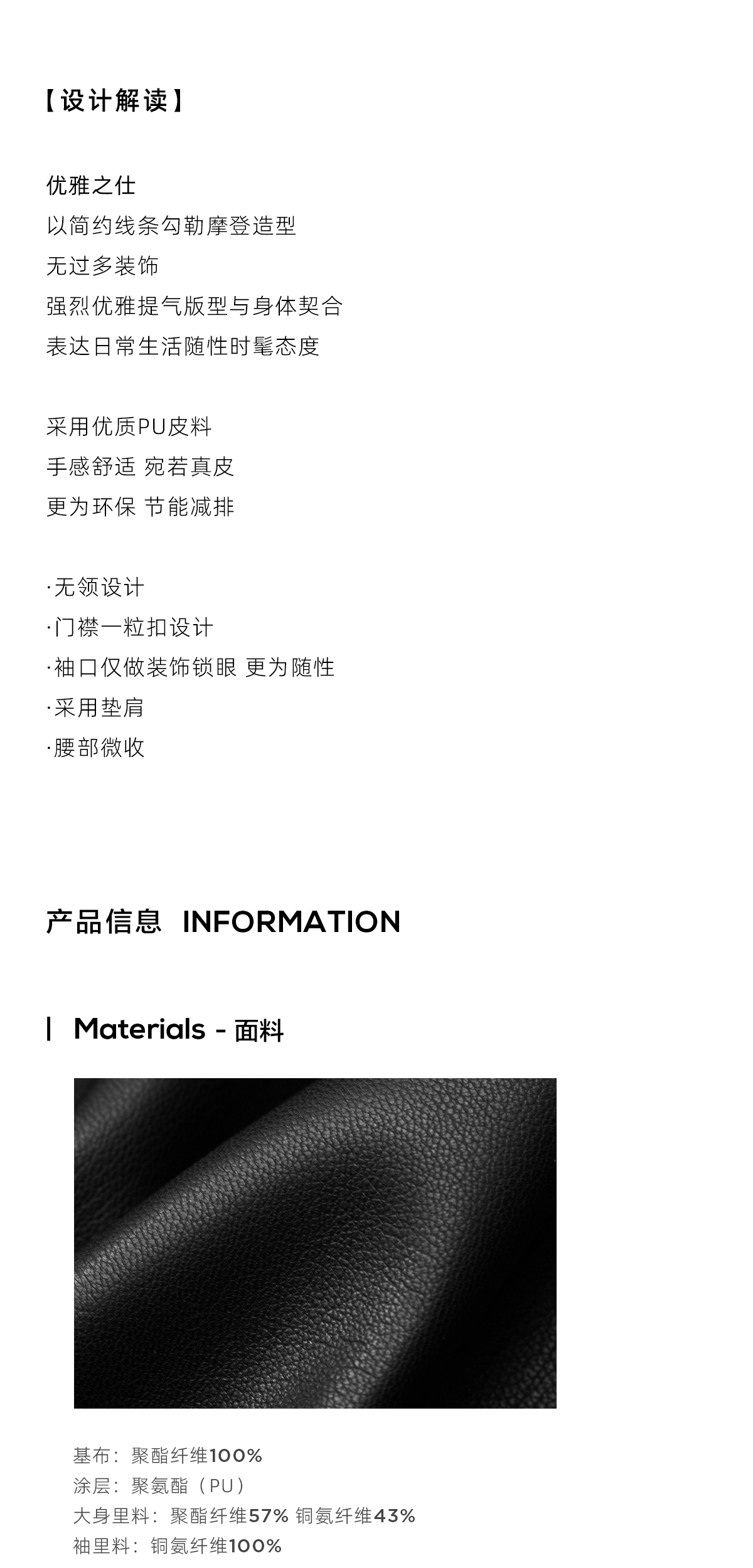 棉仓3621012001-【优雅之仕】无领简约气质PU皮西装