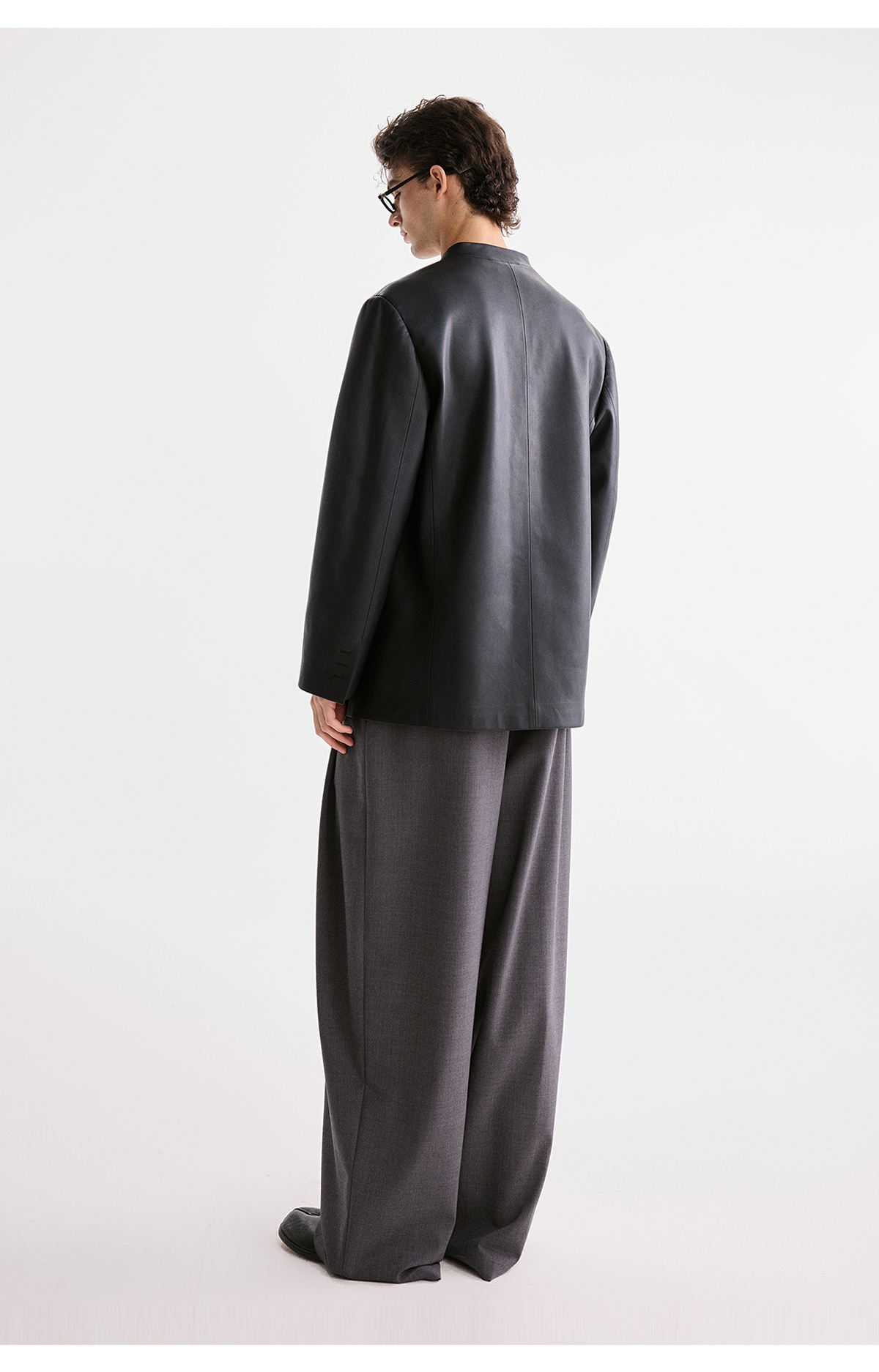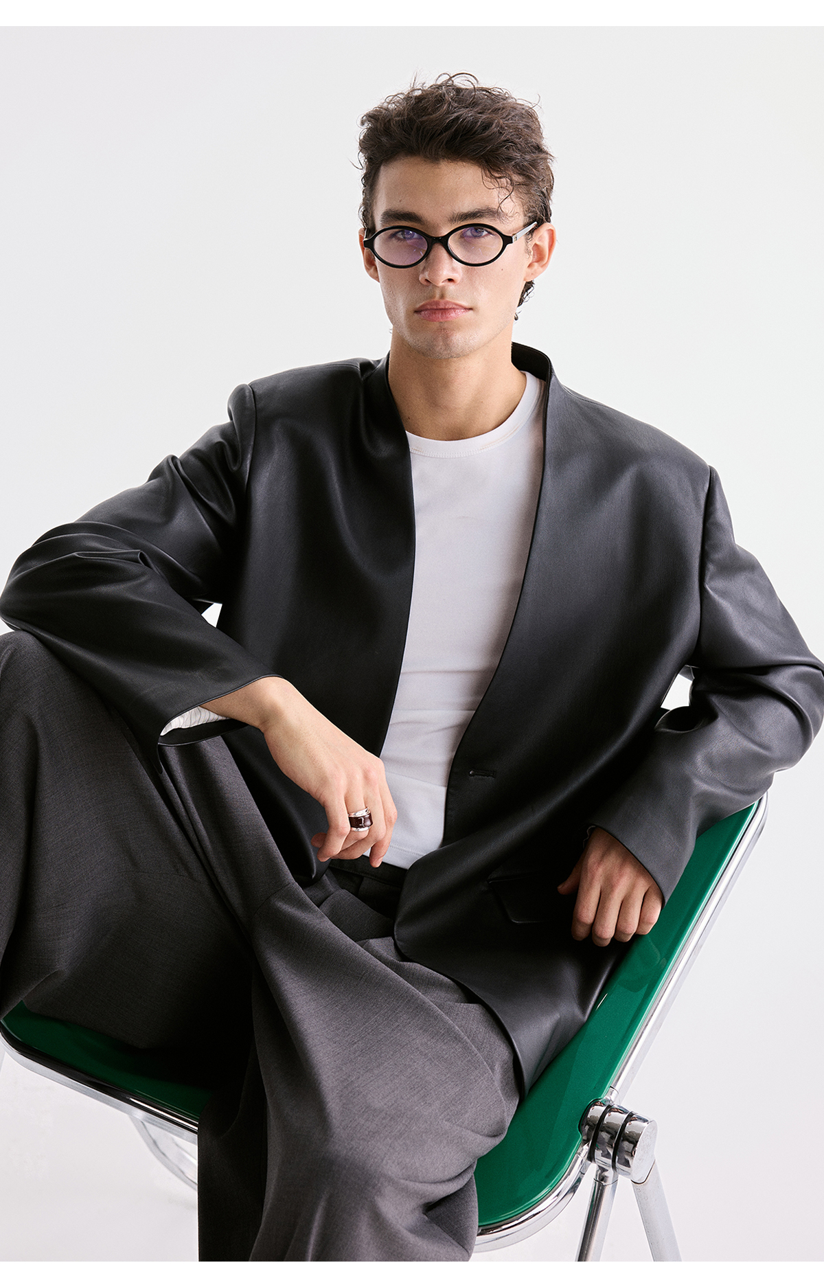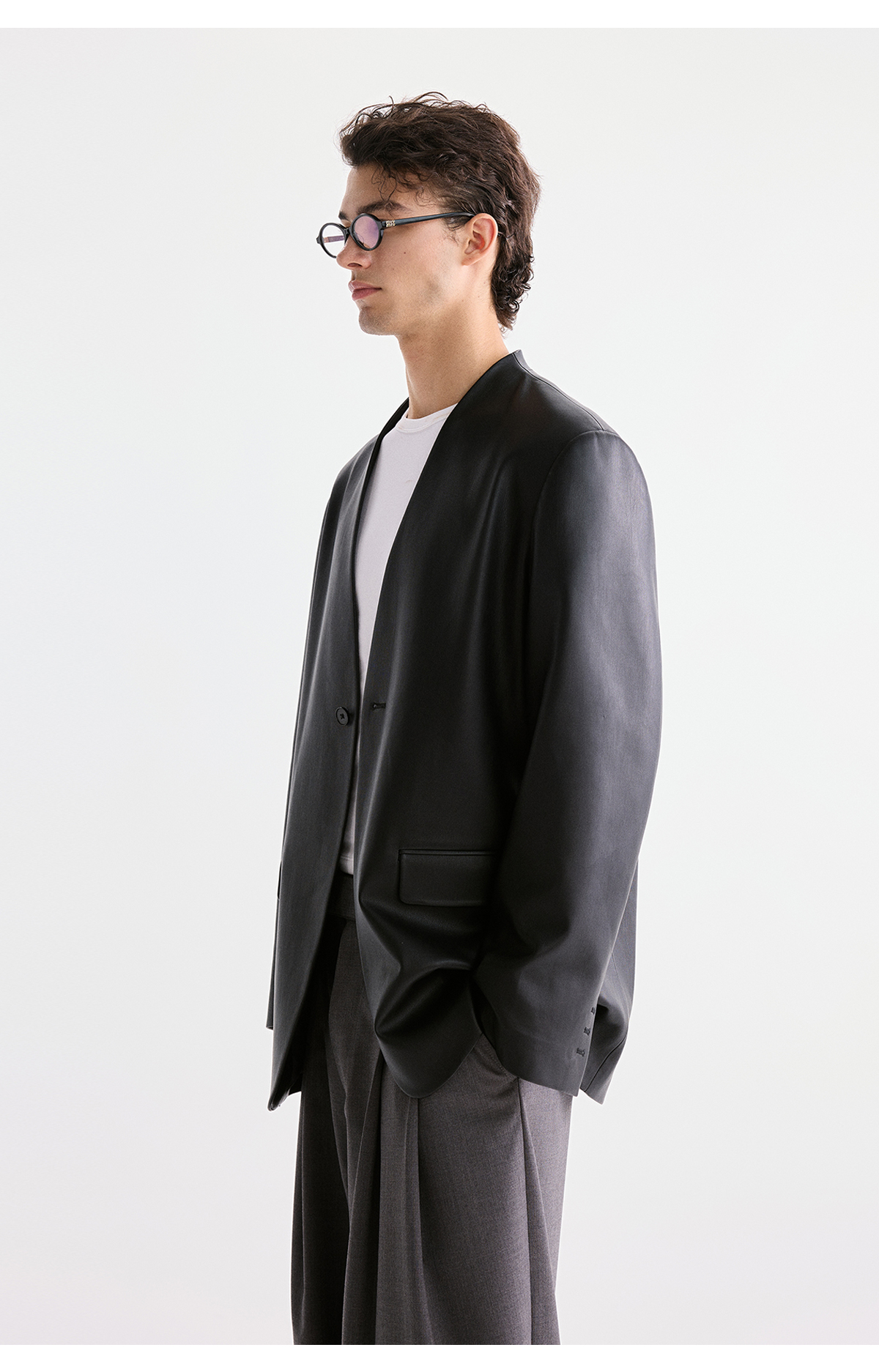 棉仓3621012001-【优雅之仕】无领简约气质PU皮西装