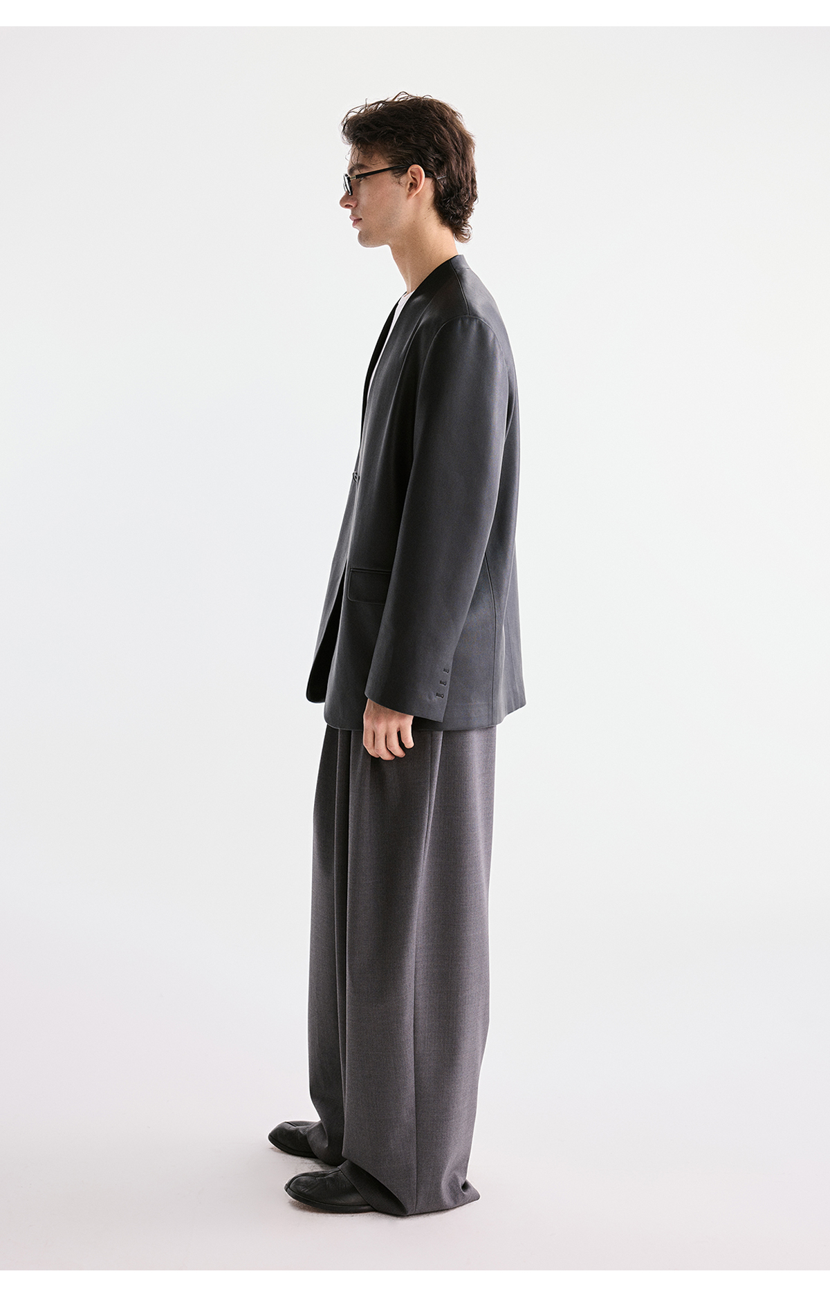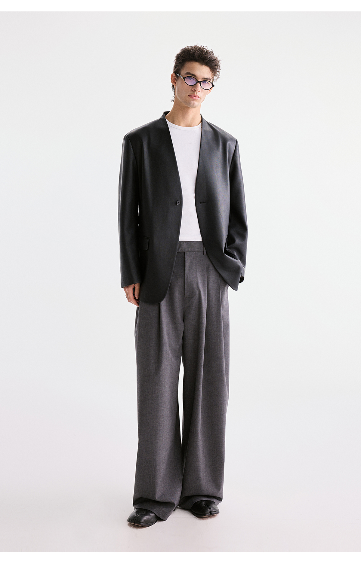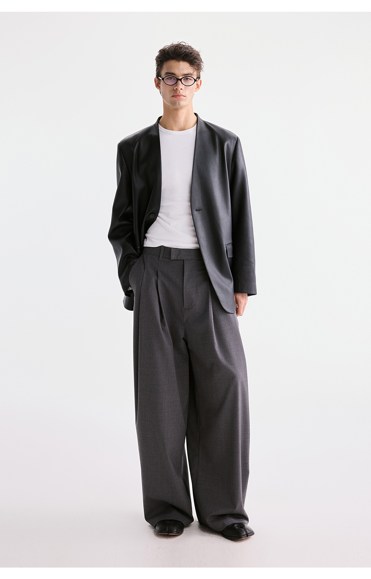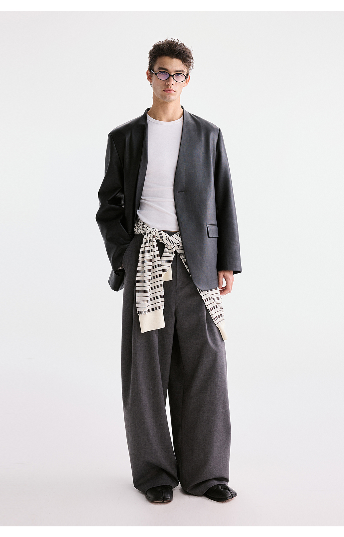 棉仓3621012001-【优雅之仕】无领简约气质PU皮西装