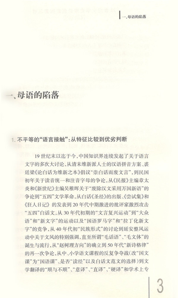 1.流行的中国现代文学史著述忽略了语言文字的重要性