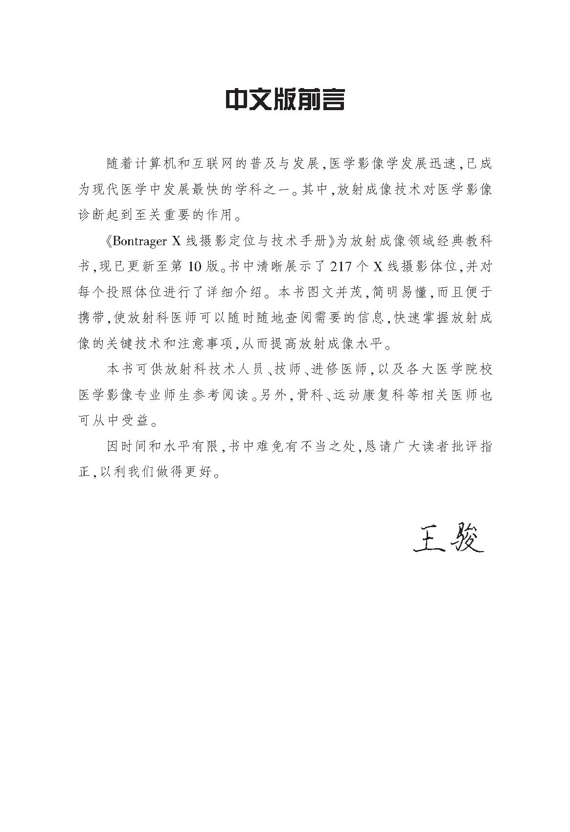 医学影像技术在临床疾病诊疗中发挥着重要作用,进行放射成像时,患者体位和成像技术参数决定了影像质量,进而影响医师对疾病的判断。《Bontrager X线摄影定位与技术手册》是放射成像领域的经典参考书,目前已更新至第10版,在保留经典内容的基础上结合最新临床经验,说明了X线摄影时的患者体位,以及关键的成像技术和成像要点。