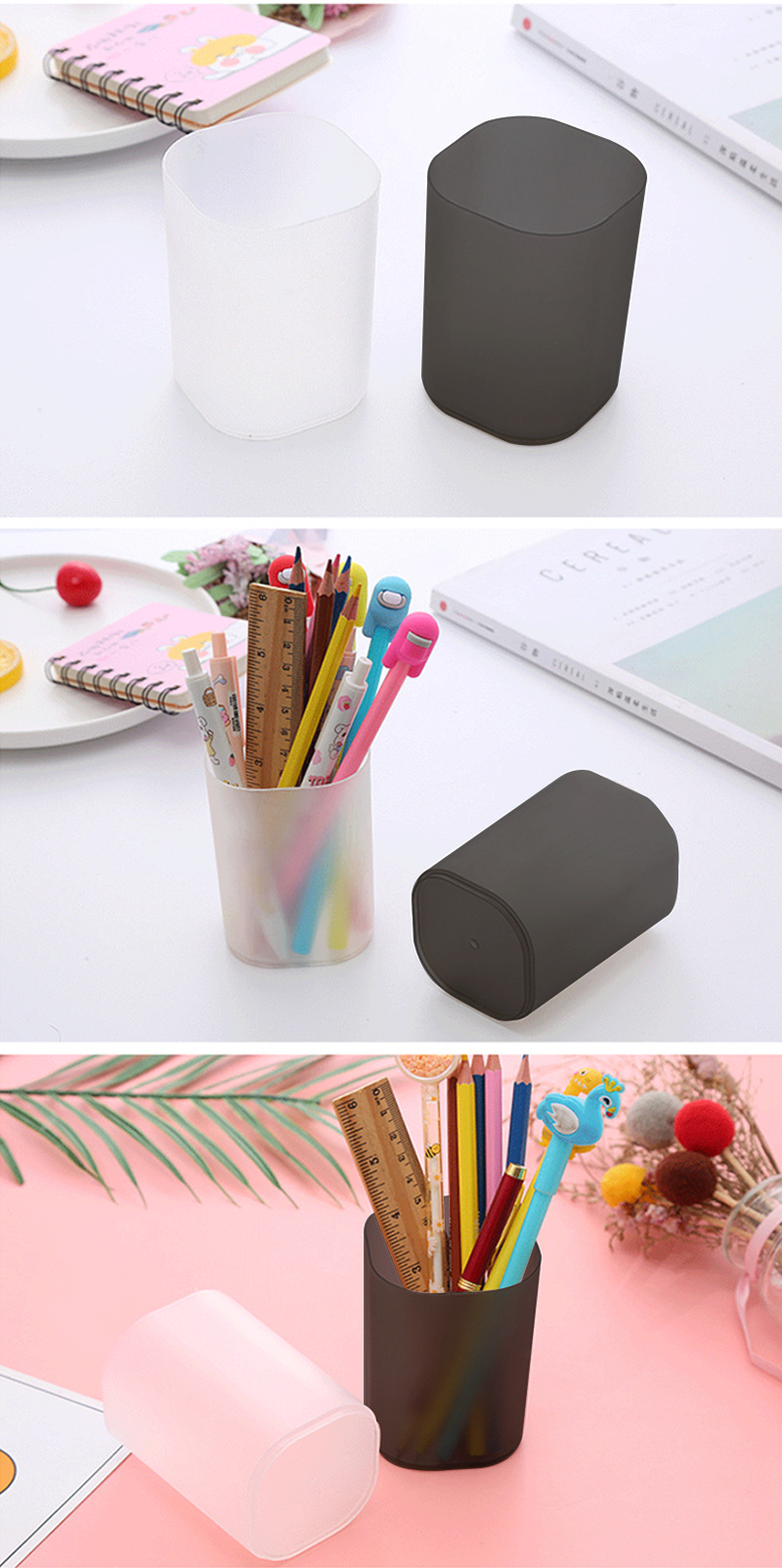 创意大容量简约笔筒 学生桌面文具收纳桶 多功能圆形笔筒 1个