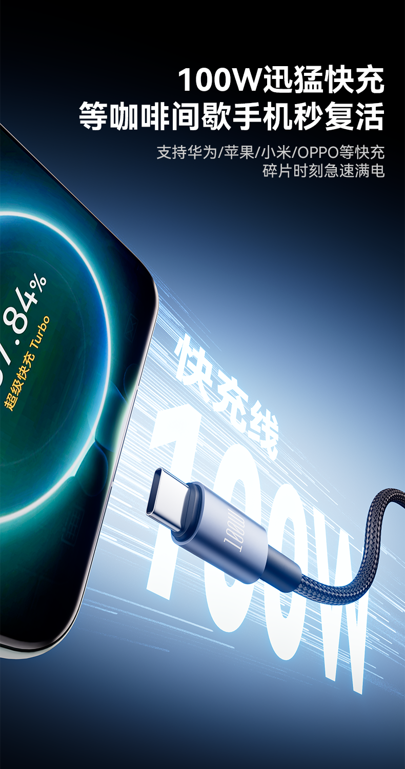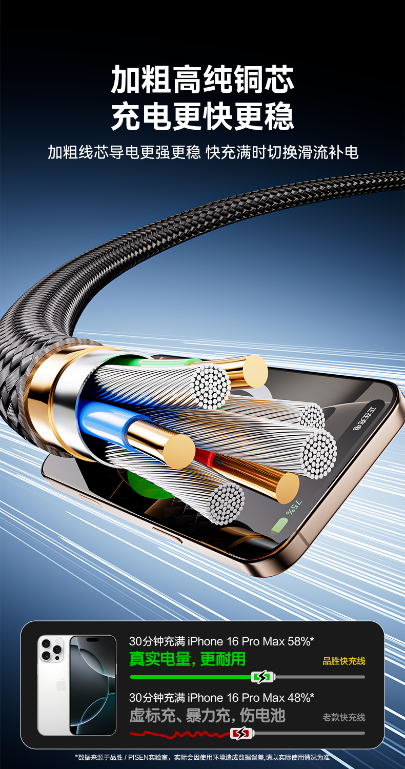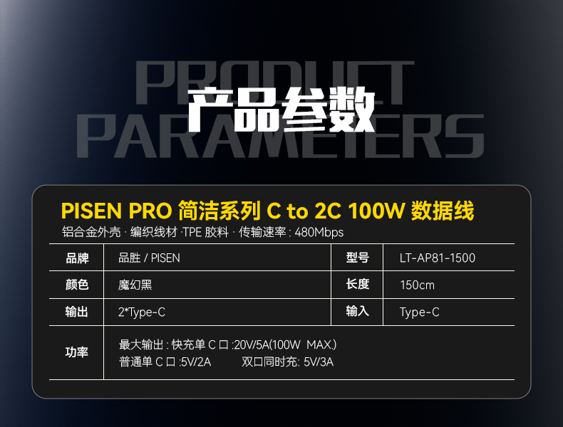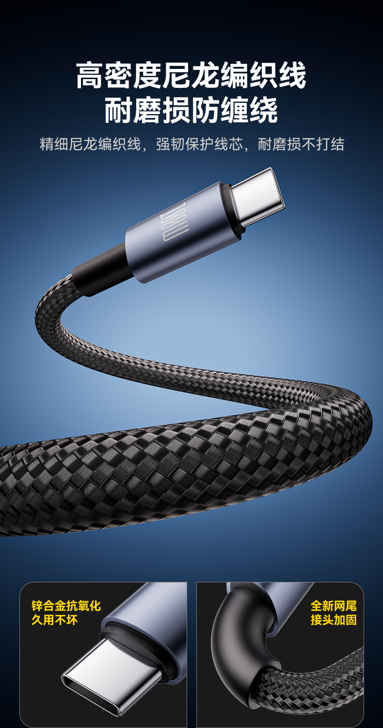 品胜 简洁C to 2C 100W快充编织线1.5米 支持苹果华为/小米/VIVO等设备快充