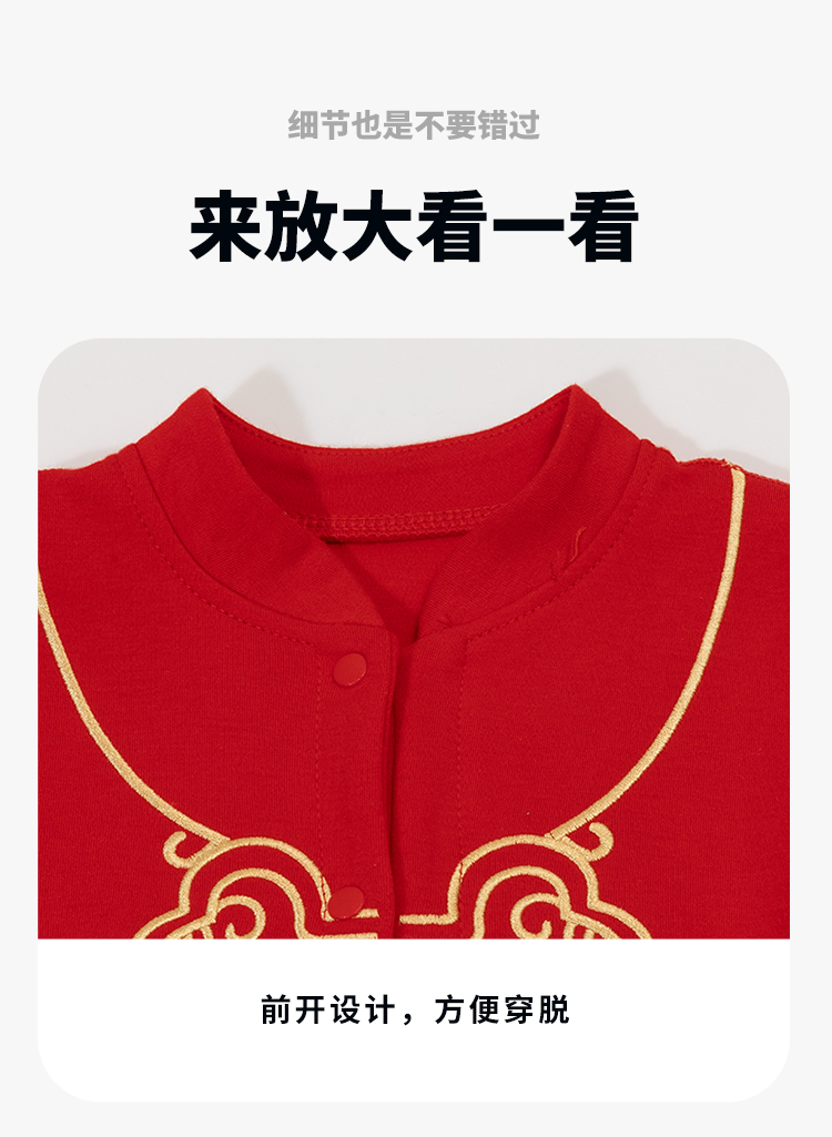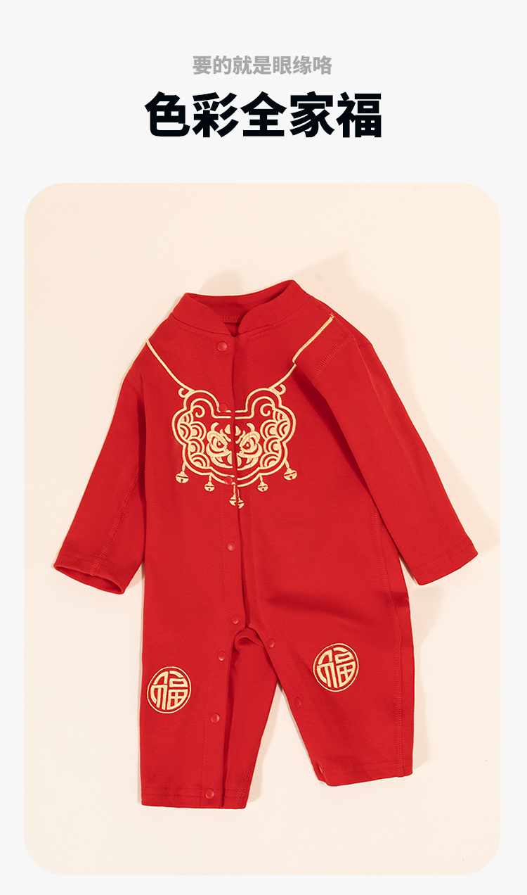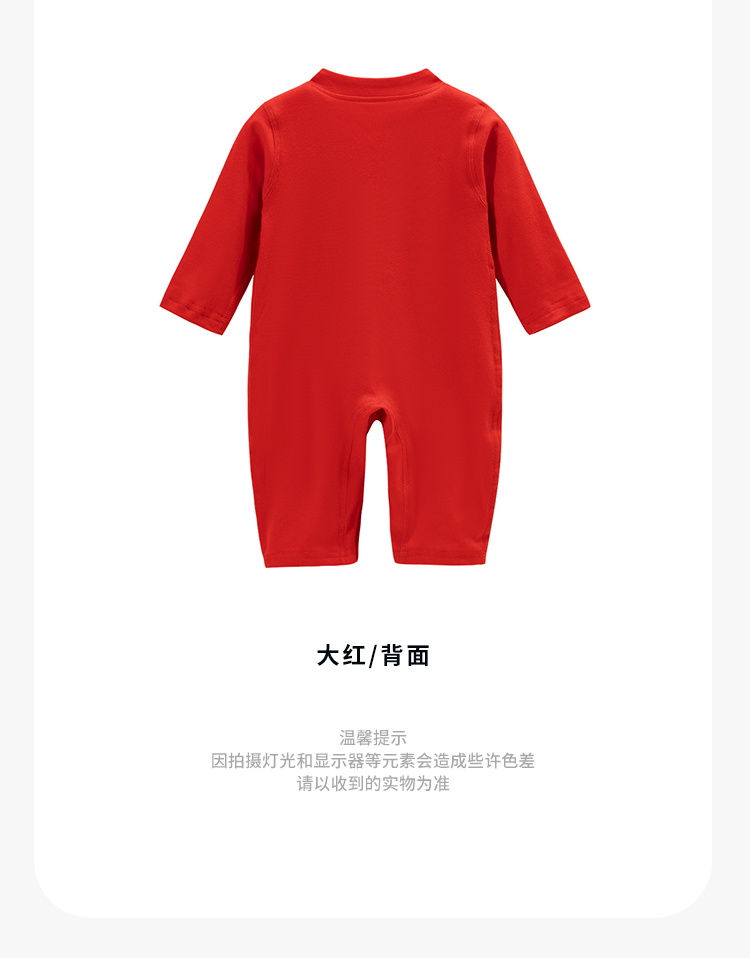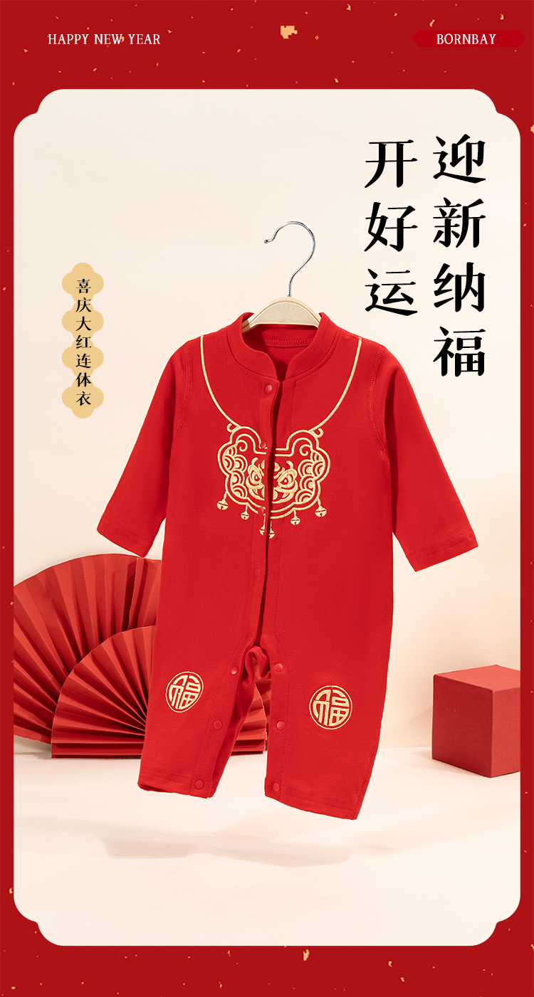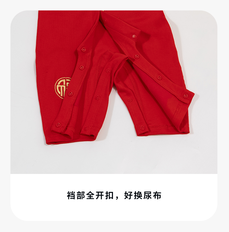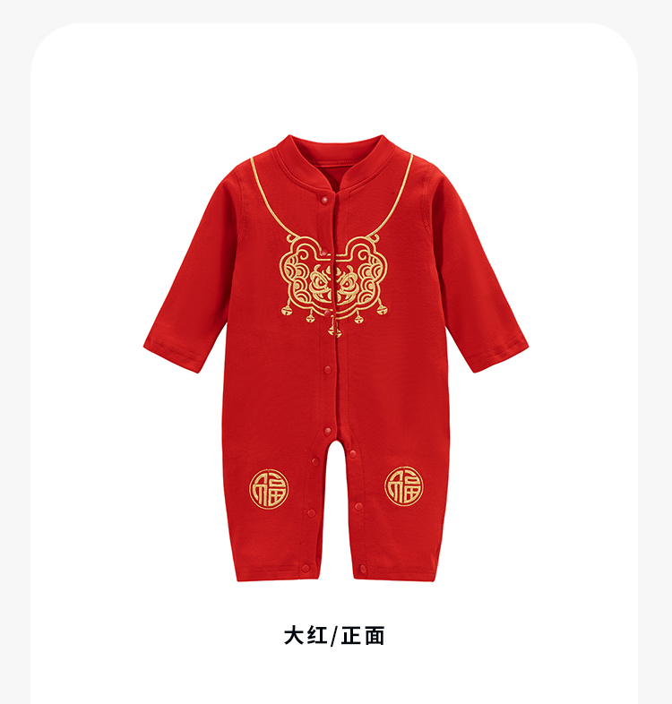 贝贝怡童装婴幼儿连体衣春秋大红新年哈衣男女宝宝百日周岁衣服ZB3DL024