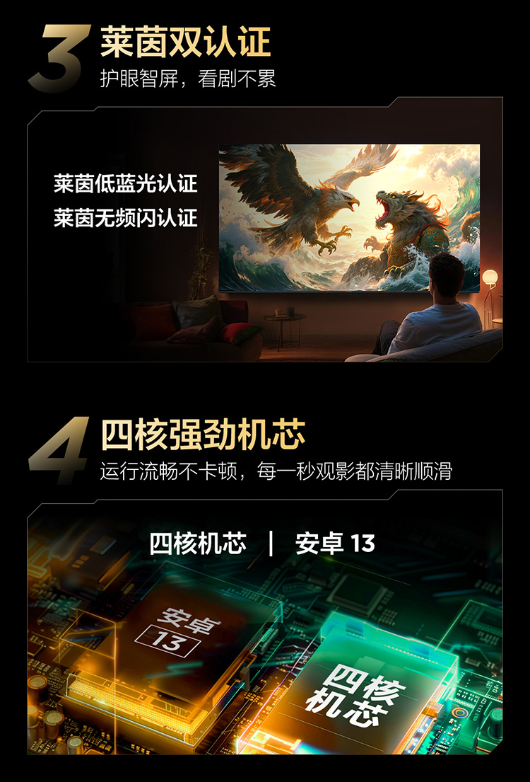 【FFALCON雷鸟】43雀4 25款 43英寸 低蓝光无频闪 自定义遥控器 无开机广告 43F195C-JN 43英寸 平板电视