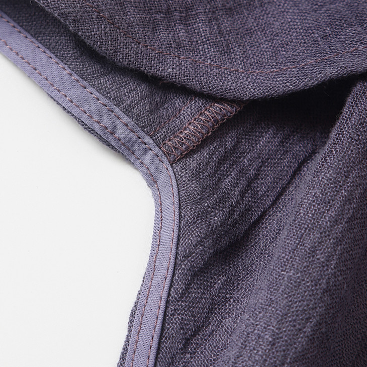 精选特制亚麻混纺竹纹皱面料,棉纱与亚麻纱线穿插交织,形成不规则的竹纹皱肌理,风格独特。