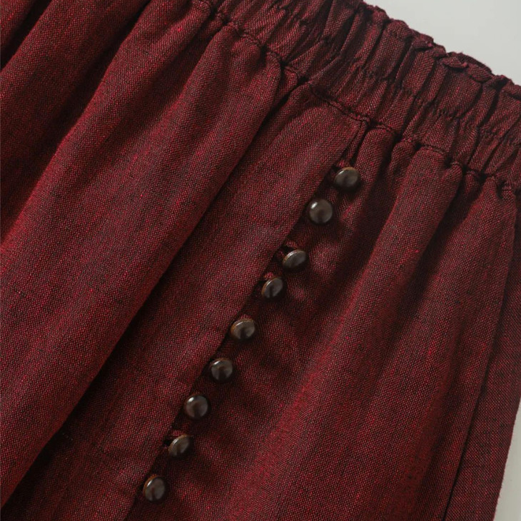 侧面门襟处黄杨木制纽扣装饰整体点缀了复古格调。