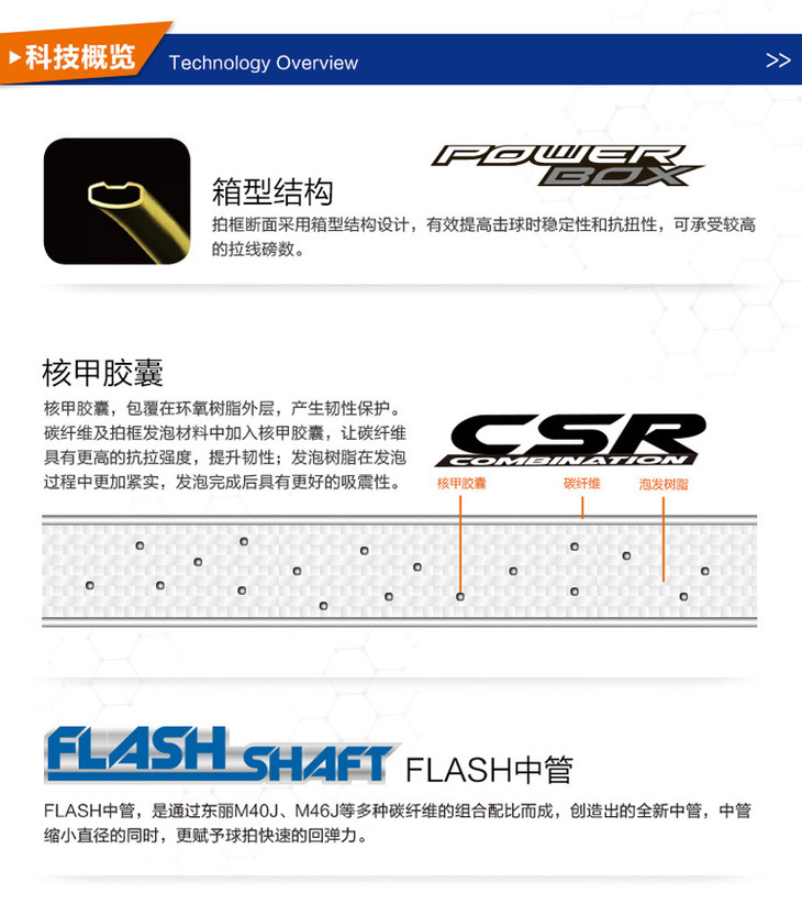 拍框材质:高刚性碳纤维+核甲胶囊(CSR)
