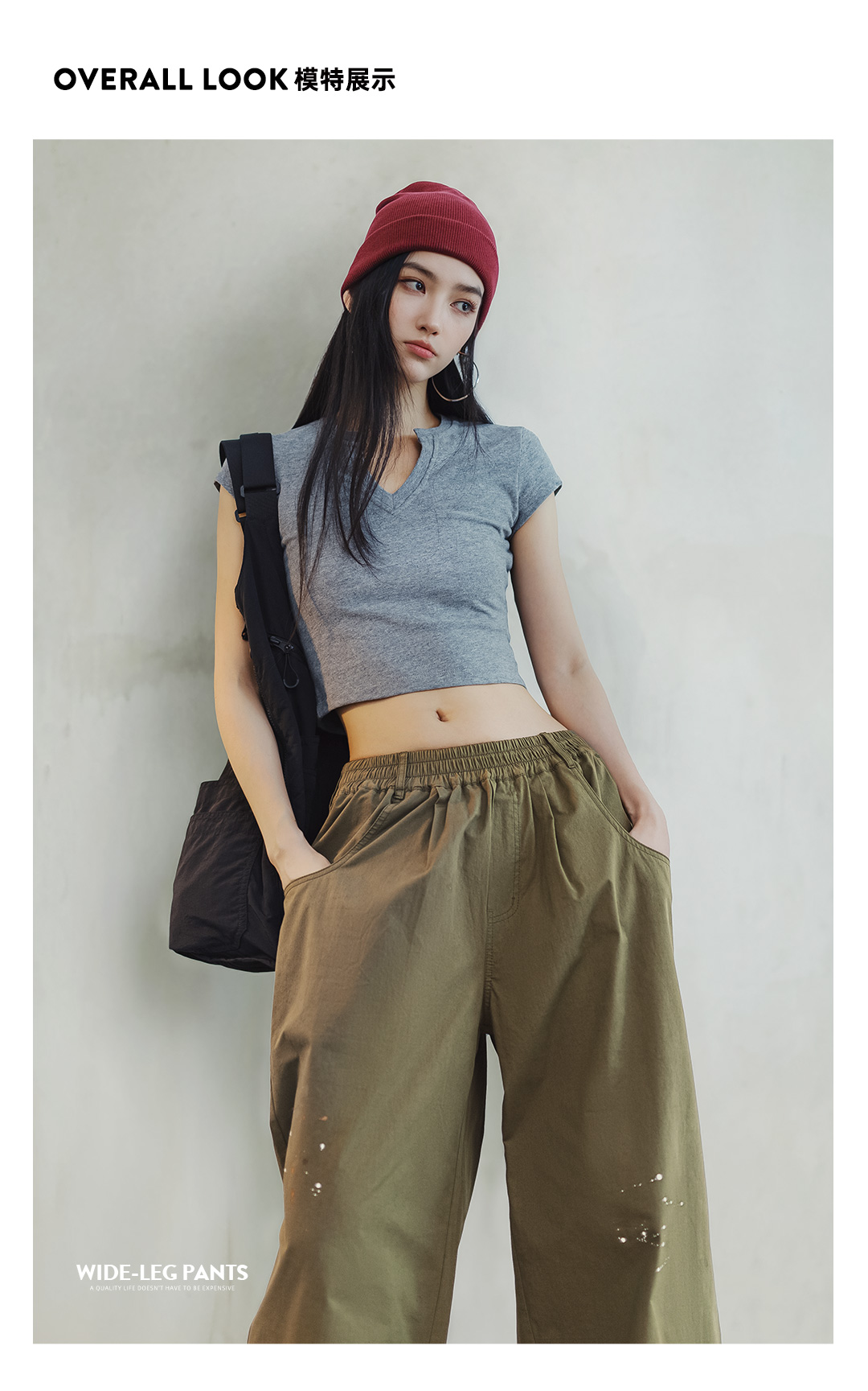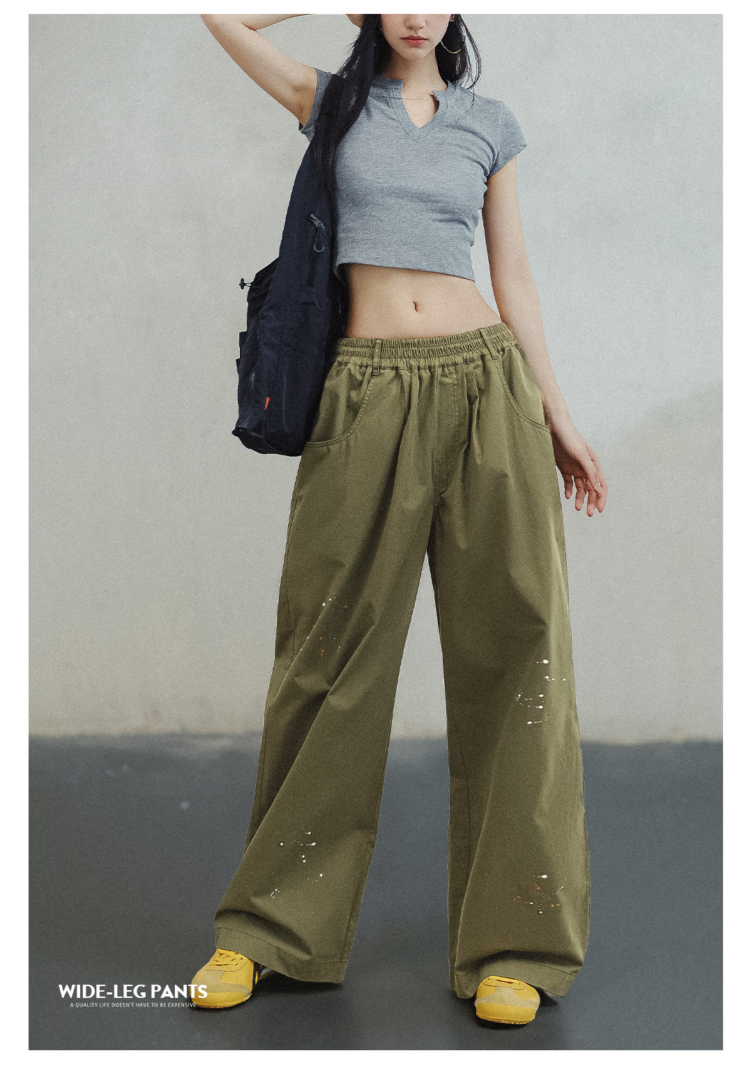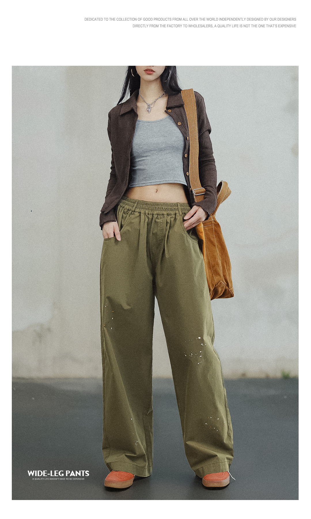 马登女装植物系穿搭复古个性泼墨阔腿裤夏纯棉直筒松紧腰休闲工装长裤