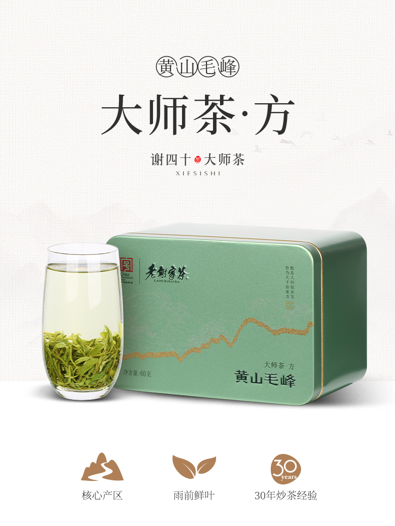 老谢家茶黄山毛峰雨前春茶大师茶方60克罐装