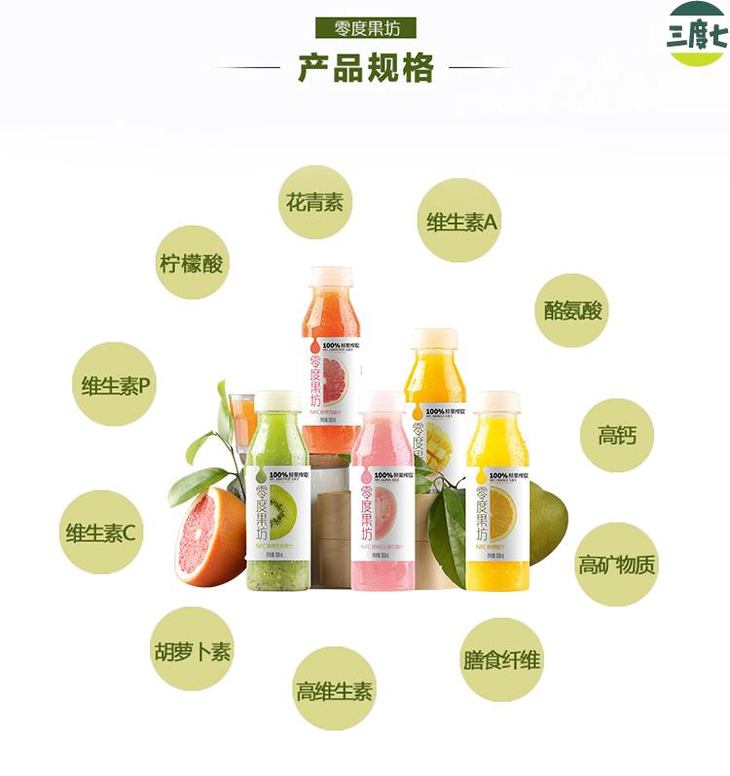 零度果坊鲜榨果汁300ml/瓶*3瓶