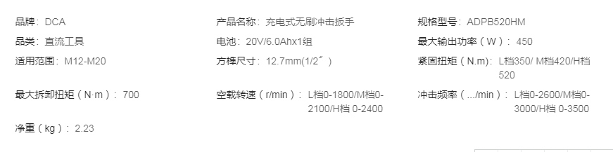 DCA东成 充电式无刷冲击扳手 ADPB520HM