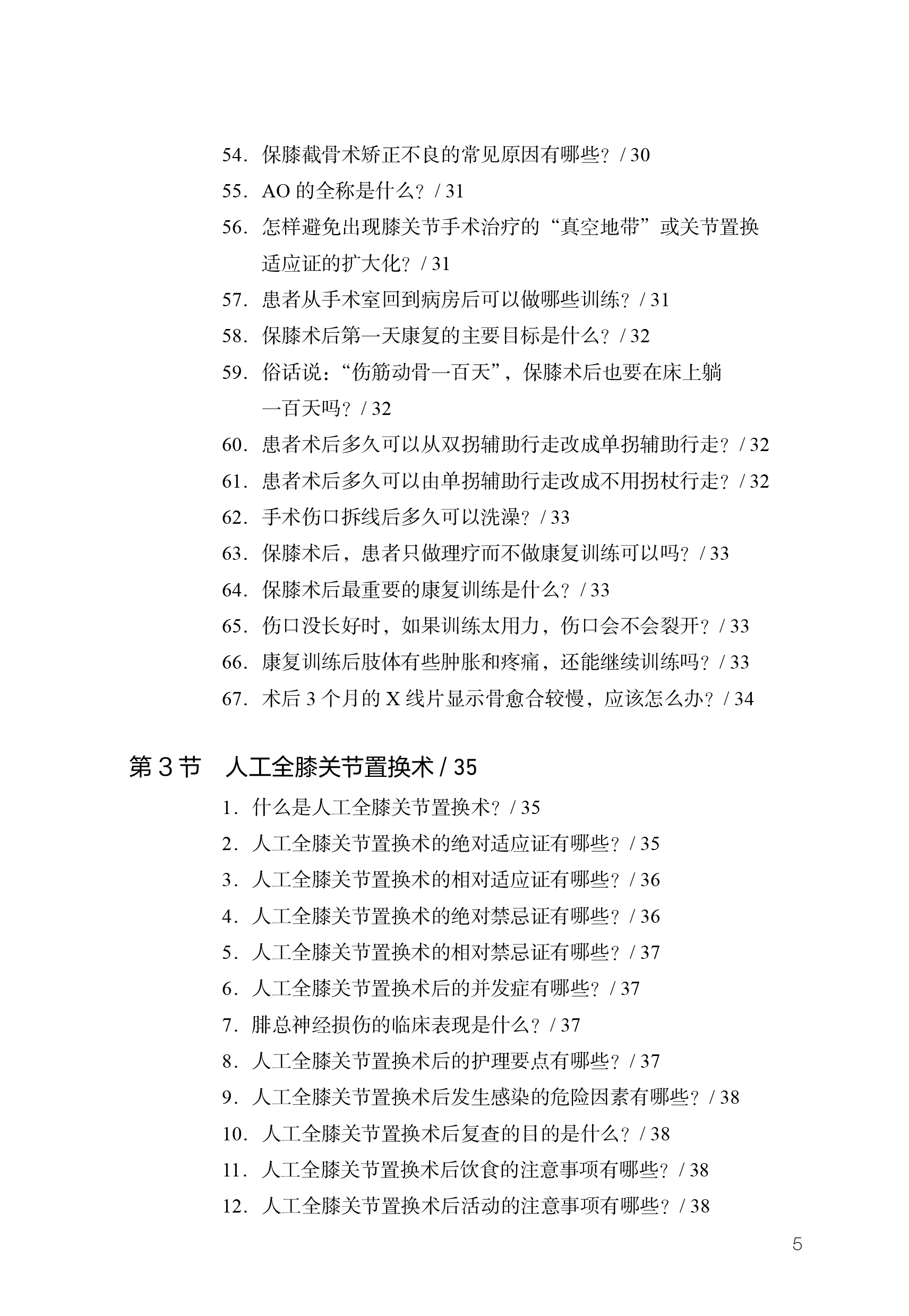 本书采用一问一答的方式,用通俗易懂的语言和清晰的图片,对保膝手术和髋膝关节置换手术相关的基础知识和术后康复进行了专业、细致的介绍和示范,非常适合低年资或基层的医师、康复师、护理人员等阅读和参考,对患者及其家属、护工在日常生活中的应用也有一定的指导意义。该书分为五章,第一、二章介绍了微创保膝手术、全膝关节置换术和髋关节置换术的疾病相关知识、治疗原则、护理要点和康复要点;第三章介绍了快优康复的理念和进展,以及骨科手术患者的常见并发症如疼痛和静脉血栓栓塞症的相关知识及最新理念;第四章主要是患者的健康教育;第五章主要是髋膝关节的康复训练示范及注意事项,作者用照片的形式展示了多组膝关节及髋关节康复训练的方法,这些方法安全、简单、有效,方便学习,患者无论在医院还是在家中,一看就懂,一学就会,非常实用。同时也便于骨科医生、康复师、护理人员了解和学习,并在工作中应用及推广。