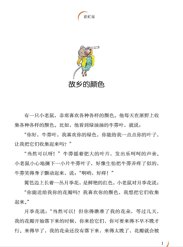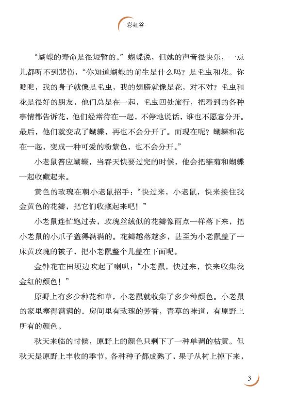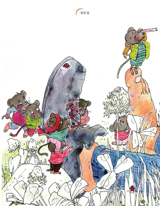 小老鼠谢过蜜蜂和月季,朝小河边跑去,河边开了粉白淡紫的雏菊。