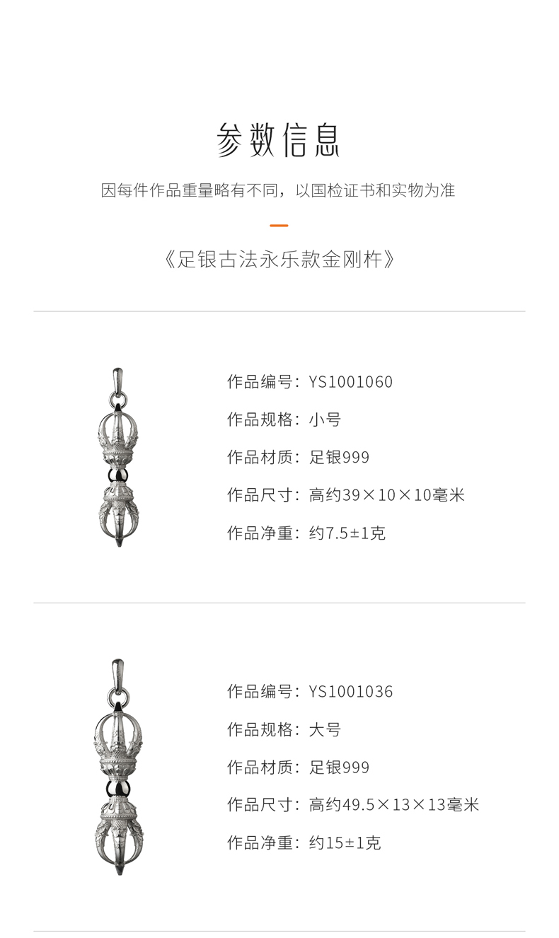 玺匠金铺《足银古法永乐款金刚杵》足银999 吊坠挂坠礼物
