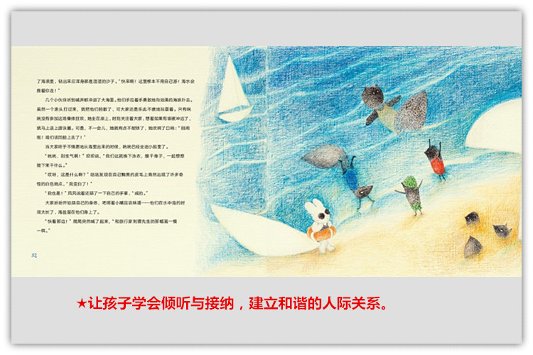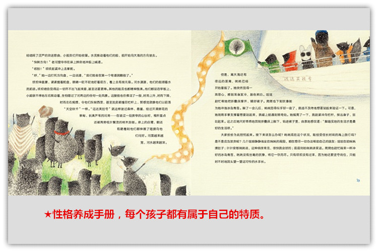 “旅行总会有风险,”鼹鼠妈妈说,“但是小孩子需要去感知这个世界。想想就觉得有趣——走出家门,看到不一样的风景,感受不一样的文化……哦,对了,”鼹鼠妈妈突然转向孩子们说,“我为你们的船想出了一个绝妙的名字。你们知道吗?在海上,大家通常用希腊语交流,你们是乘着这艘船去大海,也就是说,是它把你们运送到了那里,而‘运送’的希腊语是‘迈达芙拉’。”