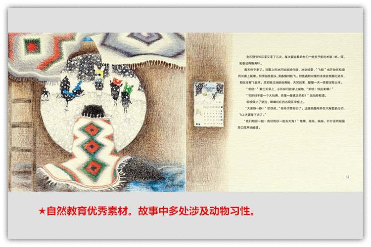这样的“游乐场”在山毛榉森林中可是前所未有。头几天,几个孩子几乎是“长在”了坝坝的船上;就连大人们也纷纷来到河边参观,他们久久地站在岸边,热烈地讨论着这从未见过的“奇景”。每天早上大家醒来后的第一件事,就是跑到河边,确认一下坝坝的圣诞节礼物是否还在。鼹鼠爸爸在自己任职的报纸上发表了一篇题为《山毛榉森林中的奇景》的长篇文章,文中还有对坝坝的采访。坝坝坦言,她给圣诞老人的信中写的是想要一艘飞船,也就是说,能够飞上天空的船。“我希望,”坝坝说,“当冰雪消融之后,这艘帆船可以飞起来,因为到那个时候它就没有阻力了。”《鼹鼠真理报》的大部分读者都认为,这艘船将来一定能飞起来。而聪聪、怨怨、呜呜、沉默的貂小姐以及猫头鹰医生却认为,这不过是一个很大的玩具。到底谁说的对呢?当然还要等到春天到了才能见分晓。