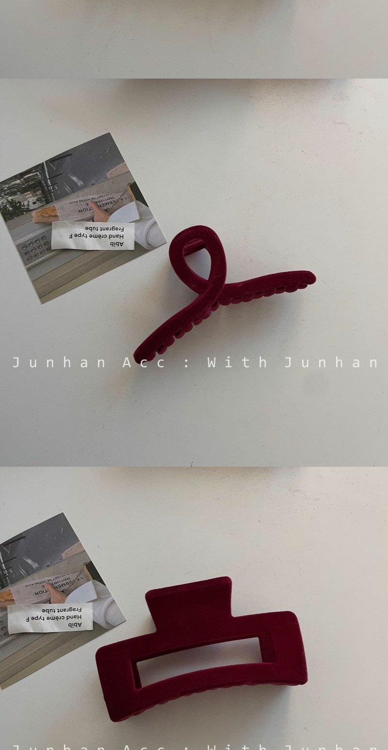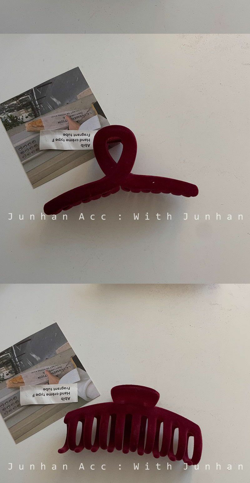 新年韩国INS红色植绒圣诞盘发秋冬鲨鱼夹发饰