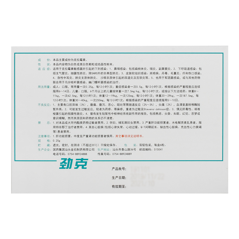 单盒包邮 多盒低至?/盒】金石劲克 克拉霉素胶囊0.25g*6粒/盒扁桃体炎咽炎副鼻窦炎支气管炎肺炎尿道炎宫颈炎皮肤软组织感染 正品