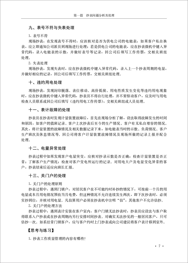 岗位胜任力是指胜任岗位工作所需要具备的能力和素质。抄核收岗位是电力营销的最后一环,承担着电力企业的社会效益和经济效益的双重责任,其基础职责就是在和客户的接触中实现“抄好表、收好费、服好务”。为了提高抄核收人员的专业和综合业务素质,按照“知识够用,技能必备”的原则,开展以提高抄核收专业技能为主的模块化培训,目的是使从事抄核收职业岗位的员工,通过岗位胜任力培训,掌握该岗位相应的专业生产技能。为了配合抄核收专业的岗位胜任力培训工作,立足于服务现场实际和岗位技能提高,编者编写本教材。