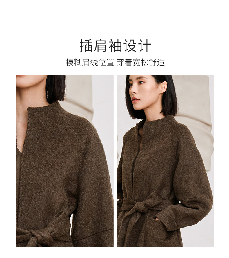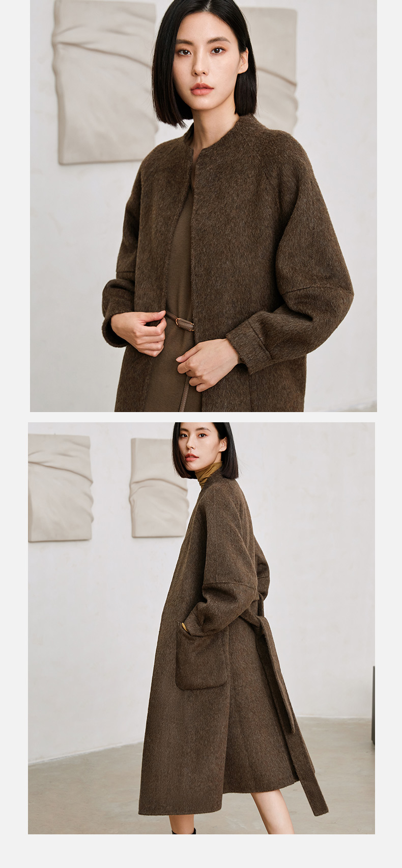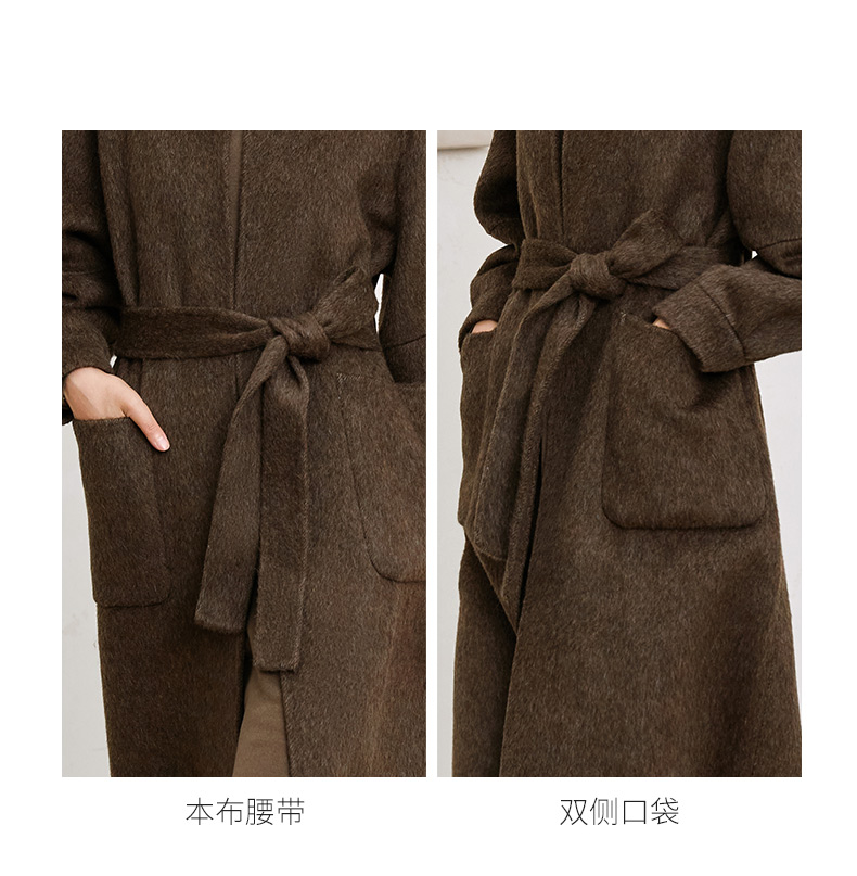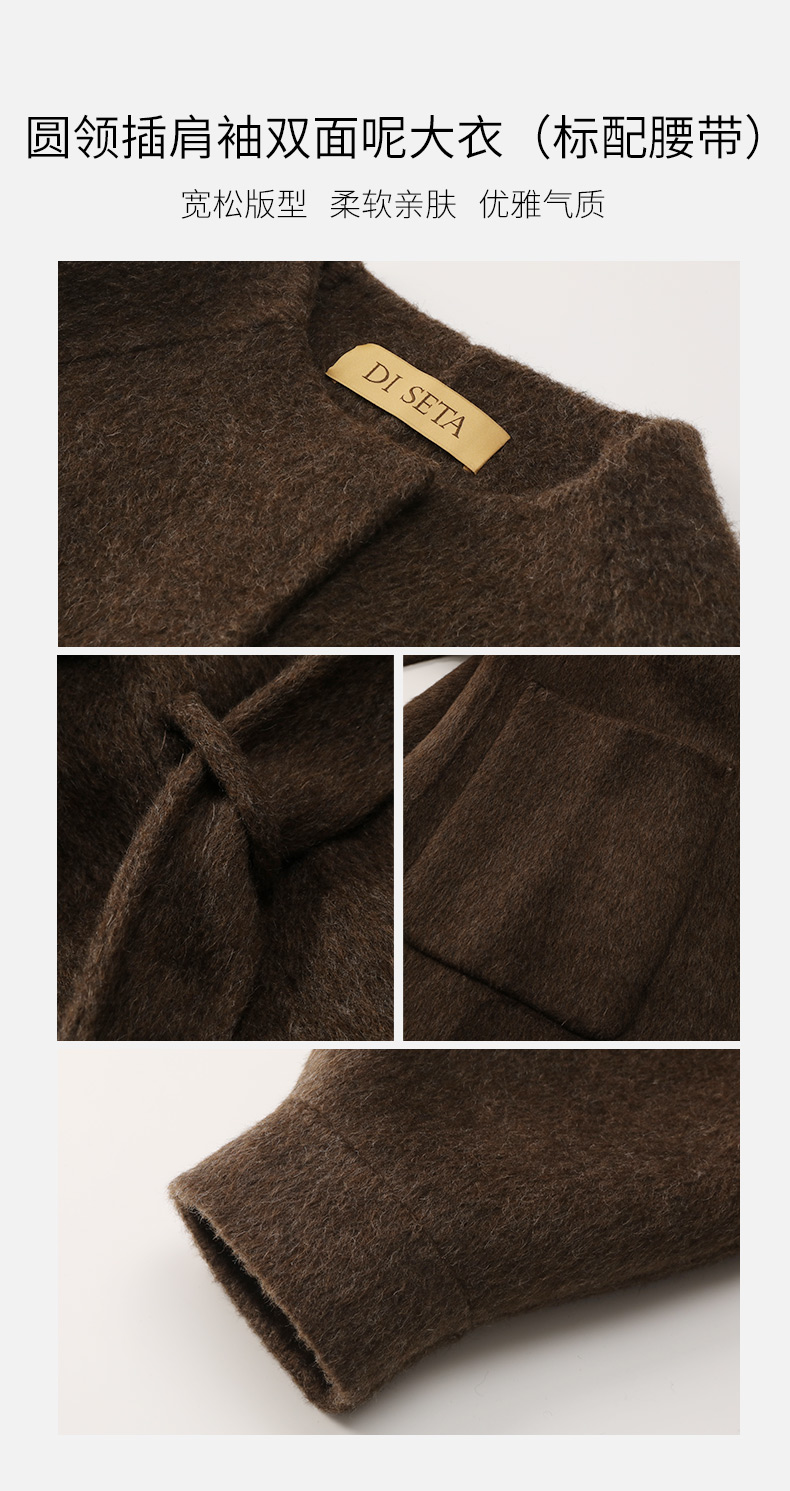 玳莎驼绒双面呢长大衣女士2023年新款收腰宽松圆领插肩长毛外套 DD39301