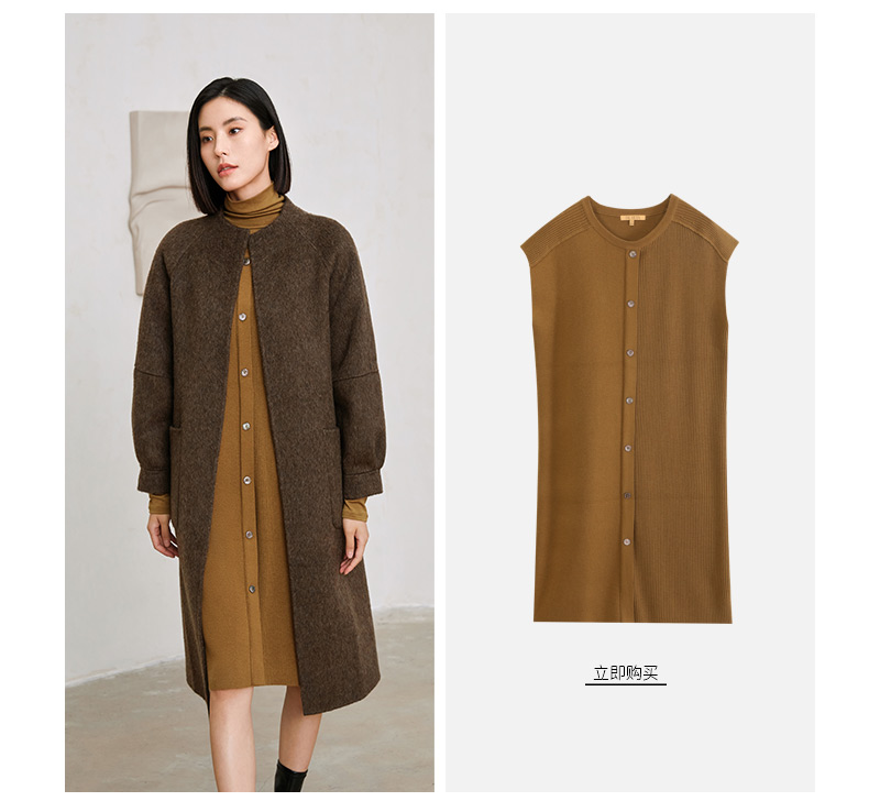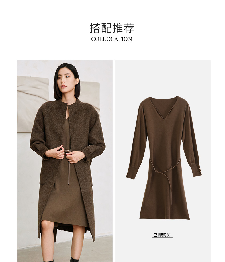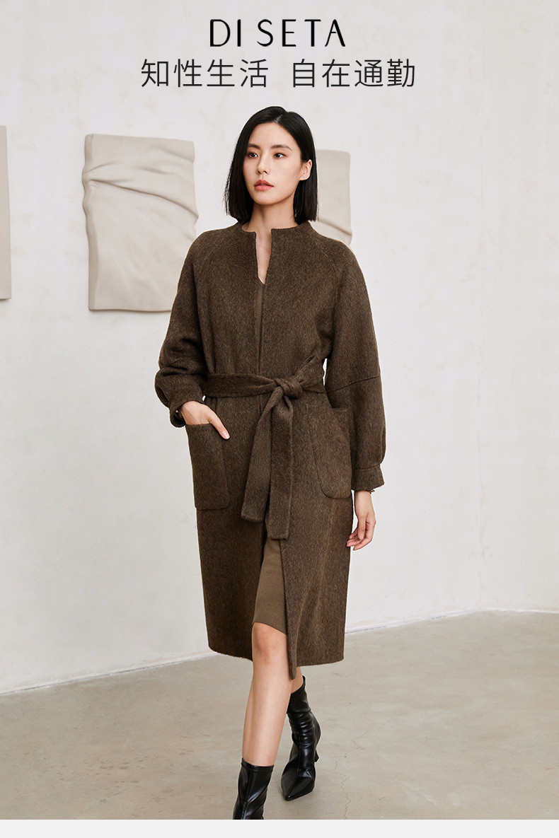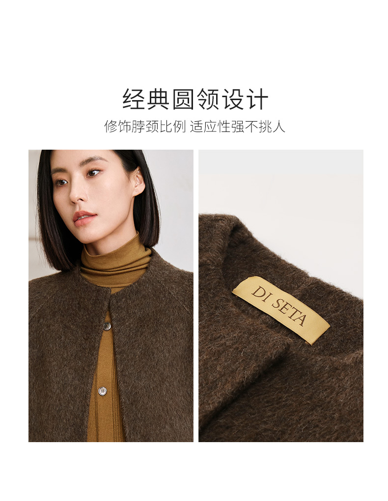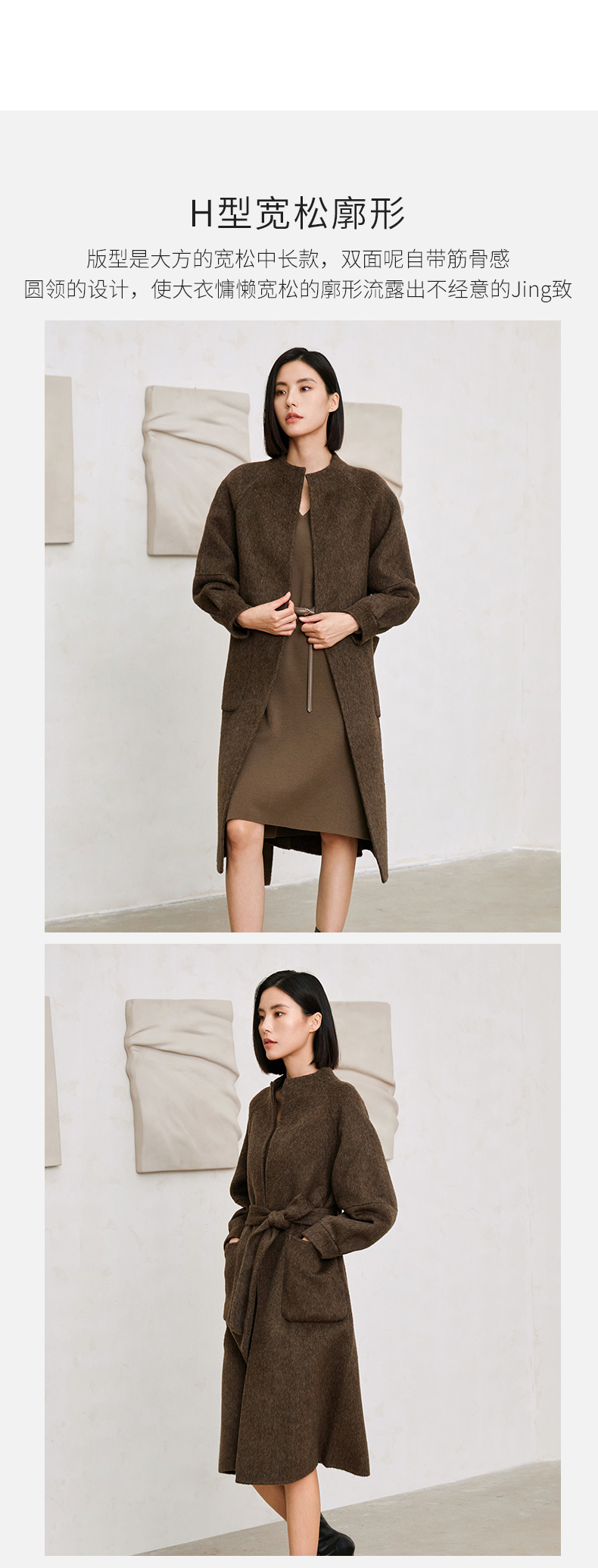 玳莎驼绒双面呢长大衣女士2023年新款收腰宽松圆领插肩长毛外套 DD39301