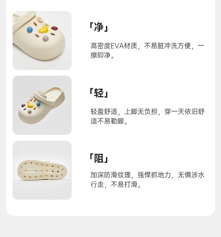 这两年大家都开始走休闲挂了,主打一个舒适帅气,穆勒鞋大家也越来越爱穿,不过传统穆勒鞋,穿久了还是硌脚,但优调这双是EVA云感鞋床,柔软有支撑,久穿久行也还是舒服,就蛮好的!颜色也更多样,酷酷的军绿色和曜石黑、亮眼的梅子红、奶呼呼的奶油白,可以自己买些鞋花、配饰,发挥小宇宙,打造一双独一无二的小鞋鞋!重点还能一鞋两穿,在家做拖鞋,户外爬山涉水搭上后带,稳稳的,更安心!