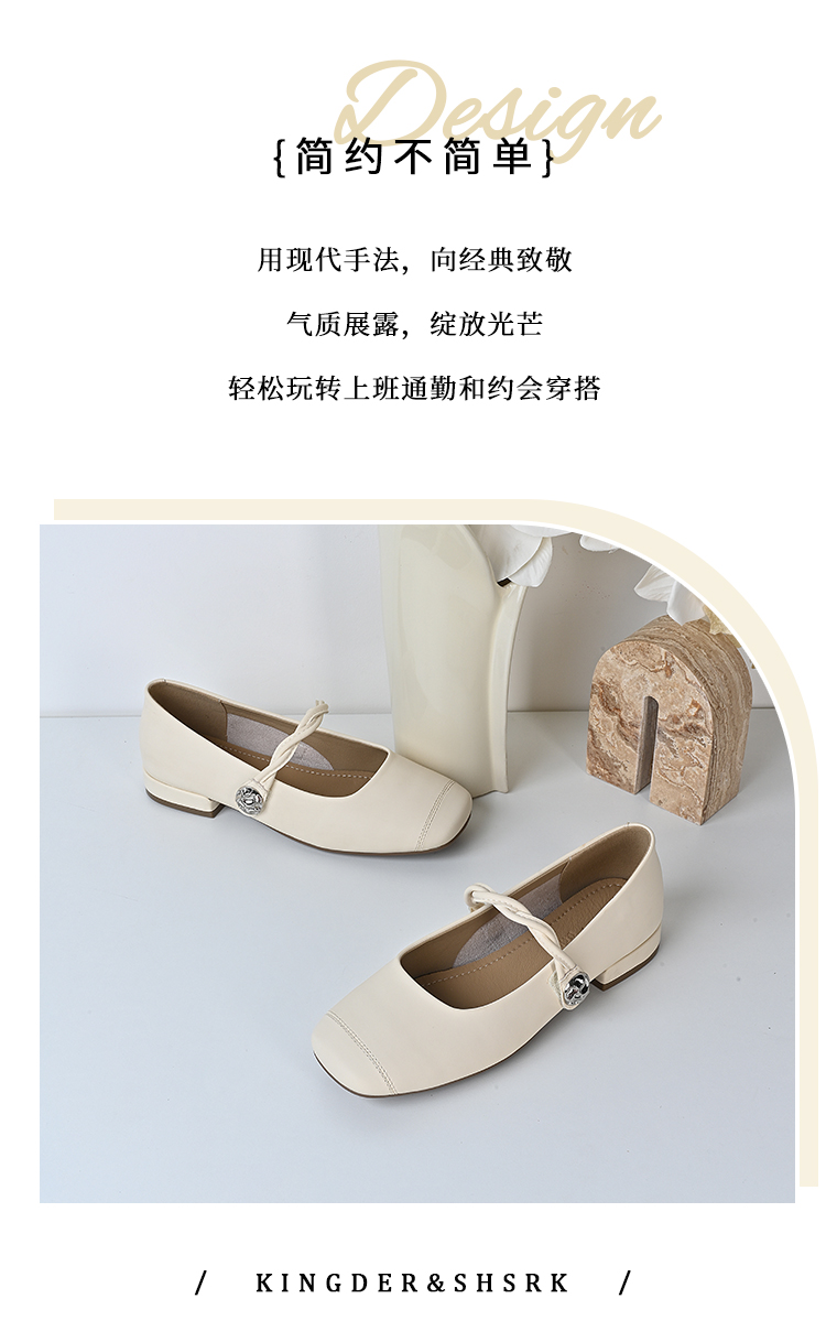 经典鲨2024年秋新品复古时尚小方头平底浅口舒适气质单鞋女KC19-D37161