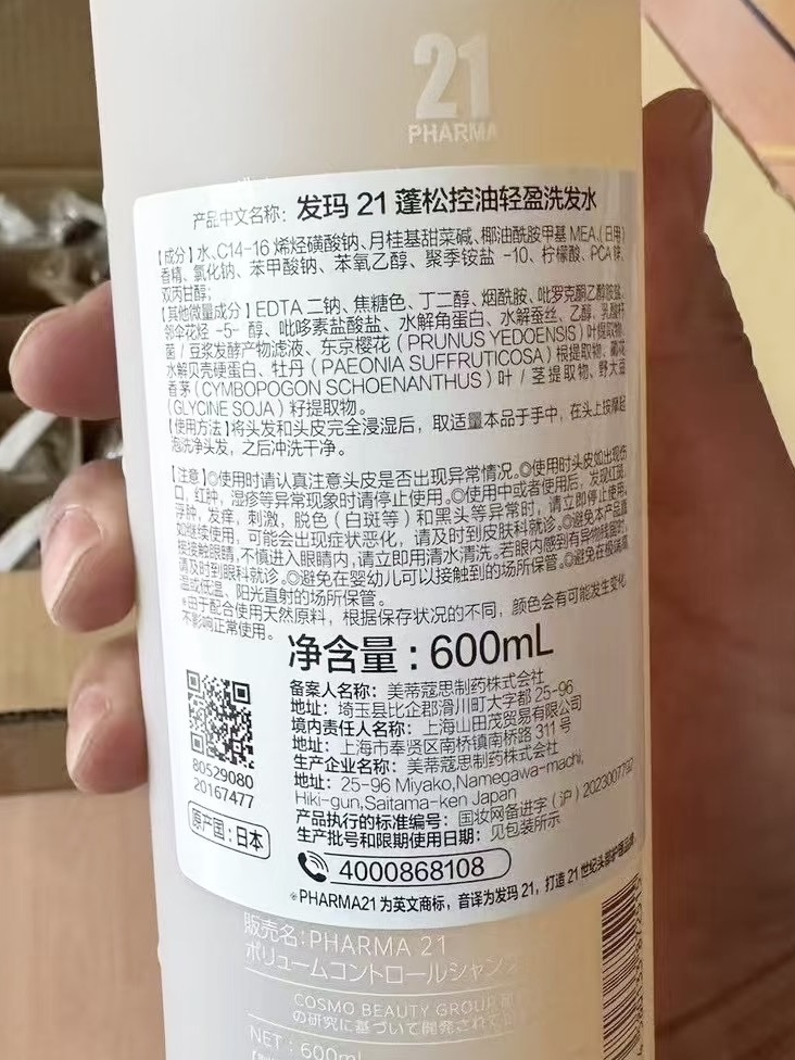 胖东来在售 日本进口PHARMA21(发玛)洗发水!发玛21 控油的600ML 顺滑的602ML 28年左右保质期