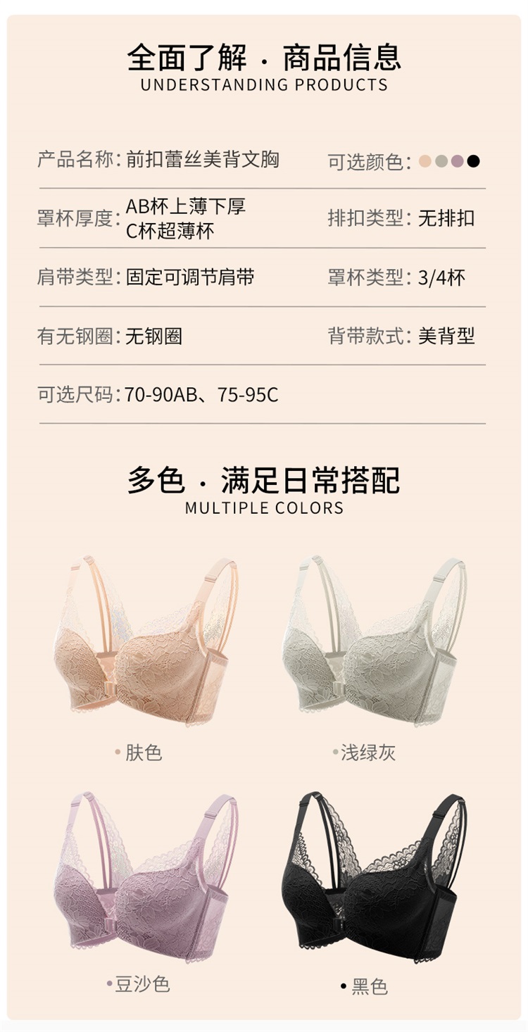 雅黛丽前扣内衣小胸聚拢性感美背文胸无钢圈聚拢收副乳调整型胸罩
