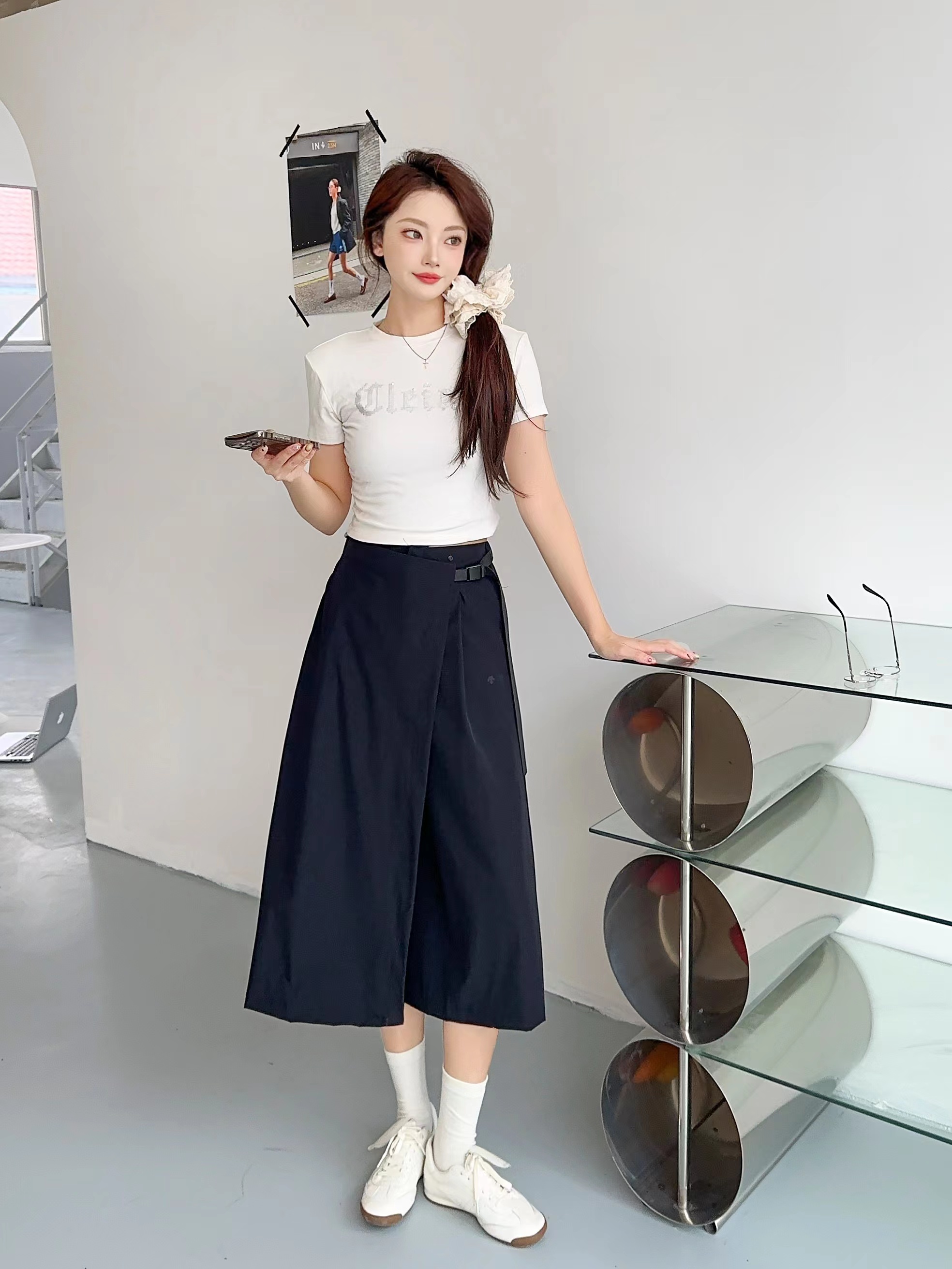 都市通勤系列女士宽松垂感阔腿裙裤初秋,当下流行高腰阔腿版型,搭配高腰比例 上身简直逆天显腿长,腰带搭扣,让整条裤子更有设计感,时尚韵味十足,又不是百搭风格!搭配截短露脐上衣就是全场吸睛的辣妹身材!小个子厚底鞋加持一下 腿长直奔一米八!立体深裆不卡裆,不会出现三角区尴尬线 健身 日常 出行超百搭