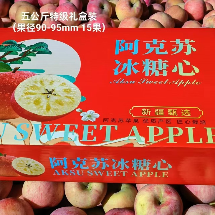 冰糖心苹果产自新疆阿克苏地区天山托木尔峰南麓的富士苹果品种,尤其以红旗坡农场为核心产区。