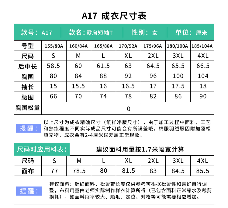 裁缝学苑A17露肩T恤1:1服装纸样剪裁图纸牛皮纸