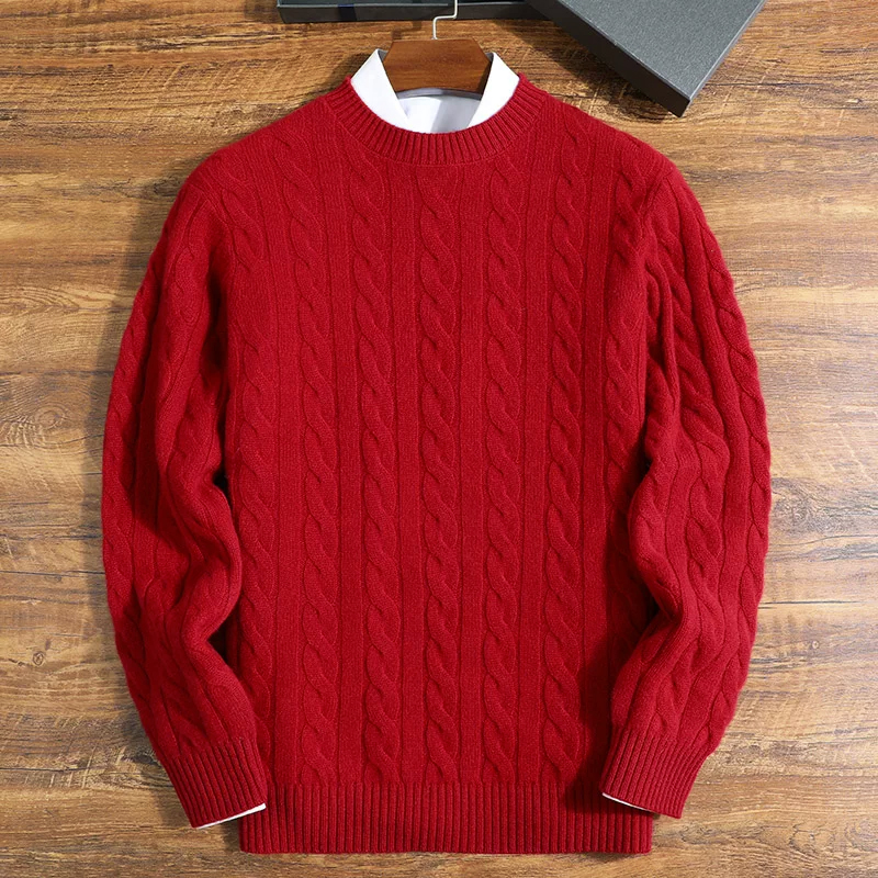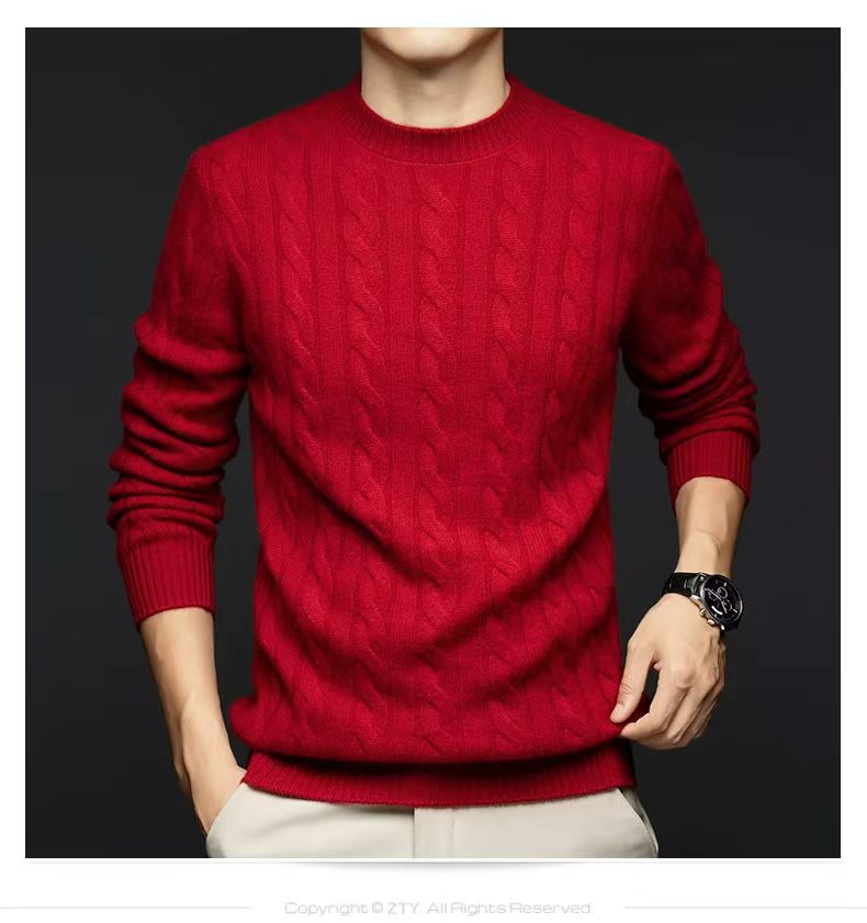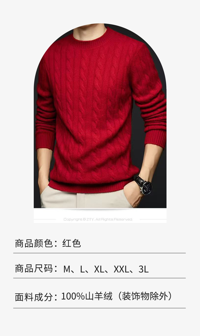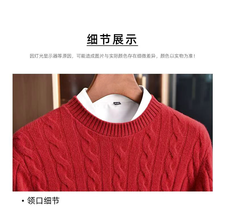【男装】圆领织麻花纹山羊绒长袖衫 9613020001