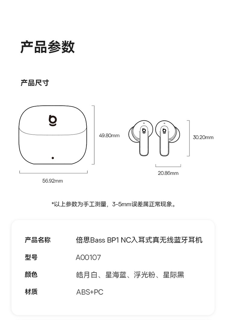 倍思 Bass BP1 NC 入耳式真无线蓝牙耳机