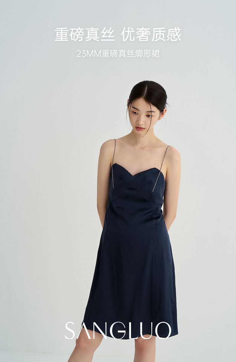 清冷优雅』桑罗23姆米重磅真丝吊带裙100%桑蚕丝睡裙女家居服外穿