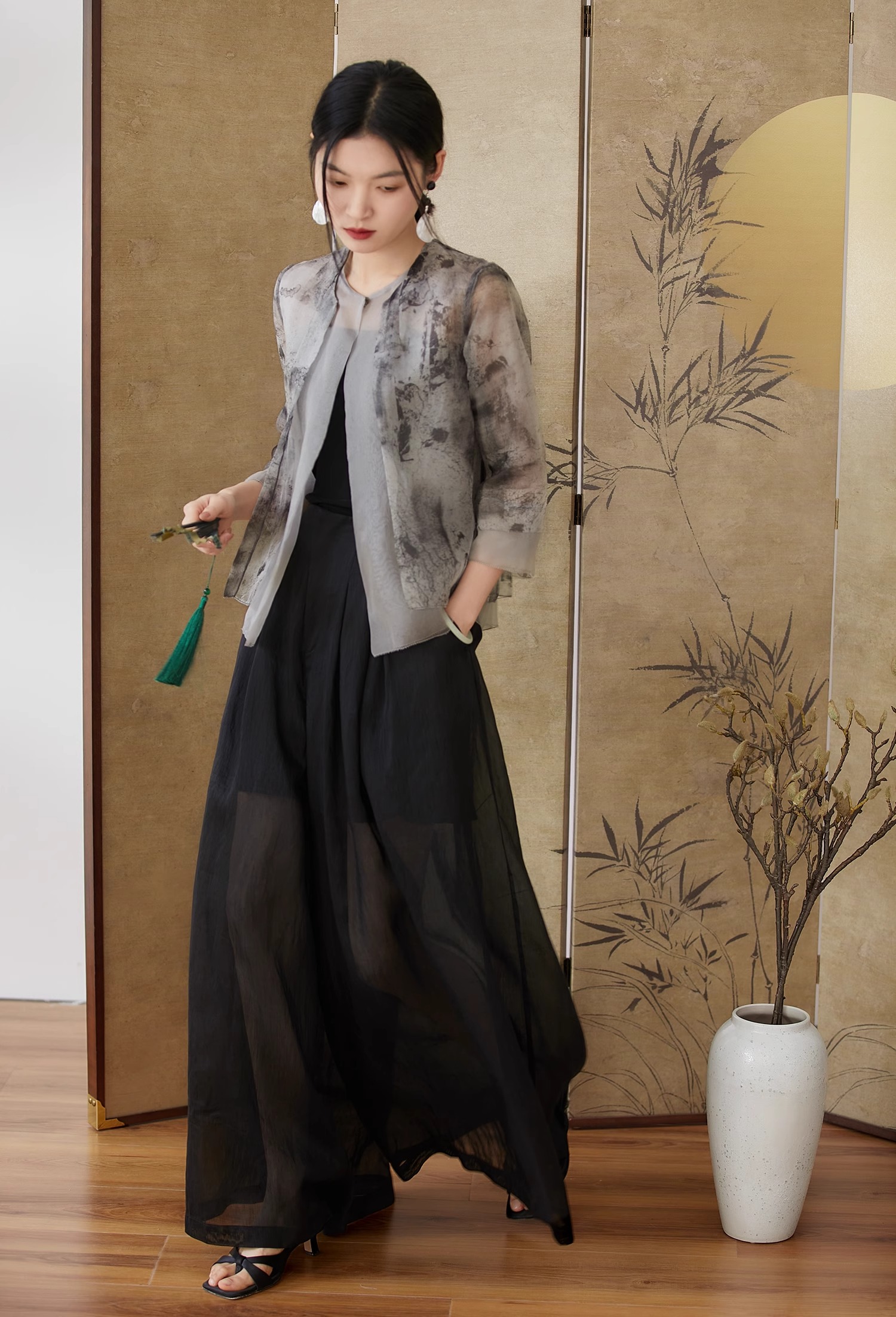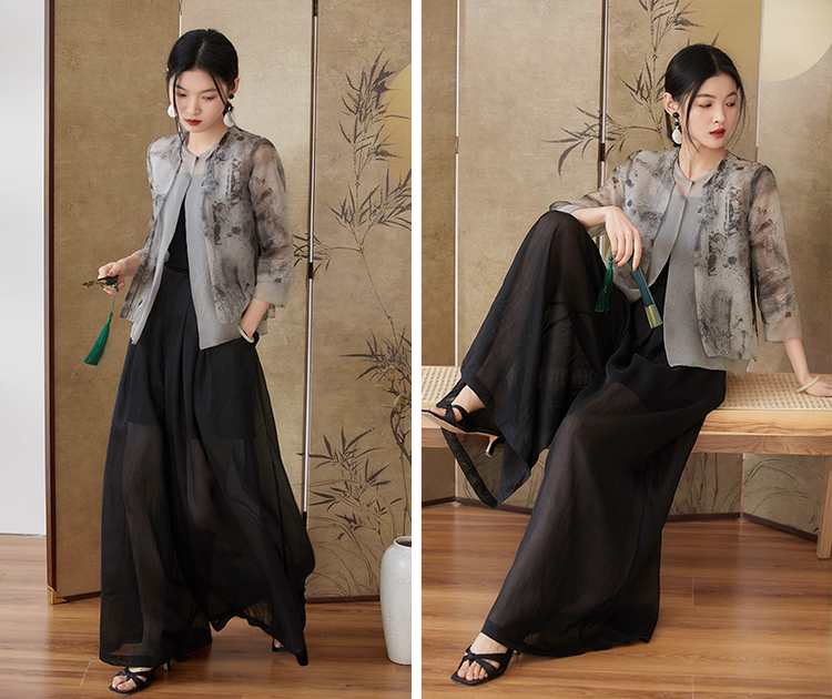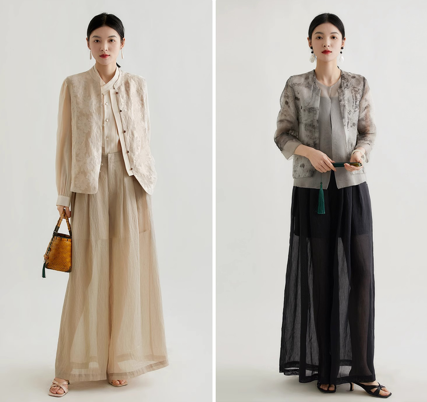 它,亦裤亦裙,似透非透营造出中式的朦胧美。