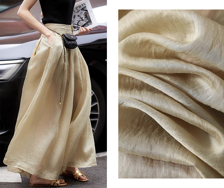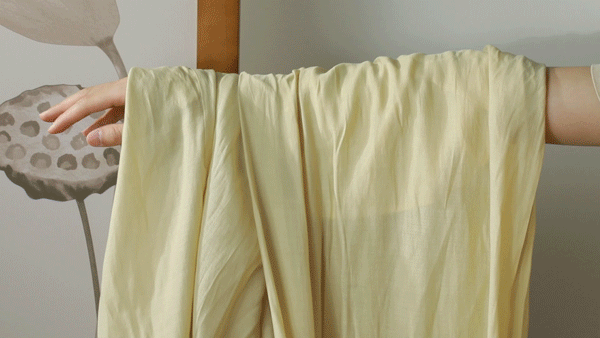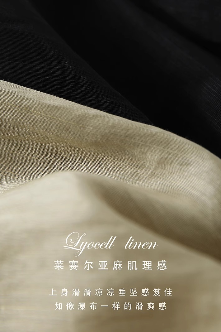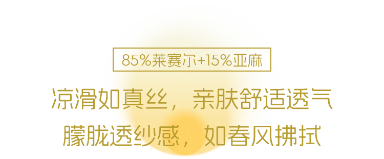 85%莱赛尔天丝添加了15%的亚麻面料,既有轻纱的清透感,又有亚麻自然朴素的高级感。