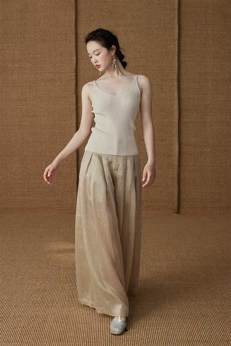 搭配我们今天的本麻色裙裤,日常穿着也毫无压力,上班、聚会都能轻松驾驭。