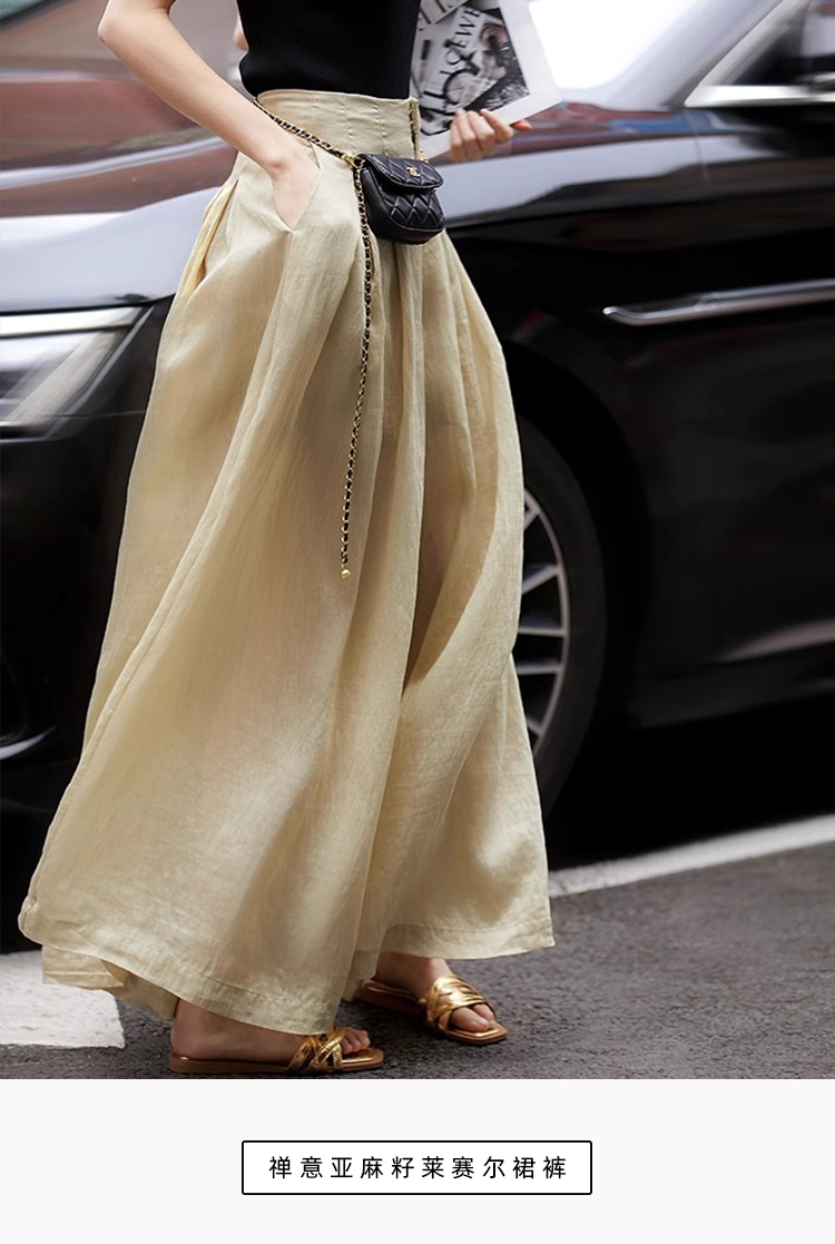 禅意亚麻籽莱赛尔裙裤 | 腿粗胯宽全挡住,柔软凉爽透气,时髦精早早穿上【3-5天发货】