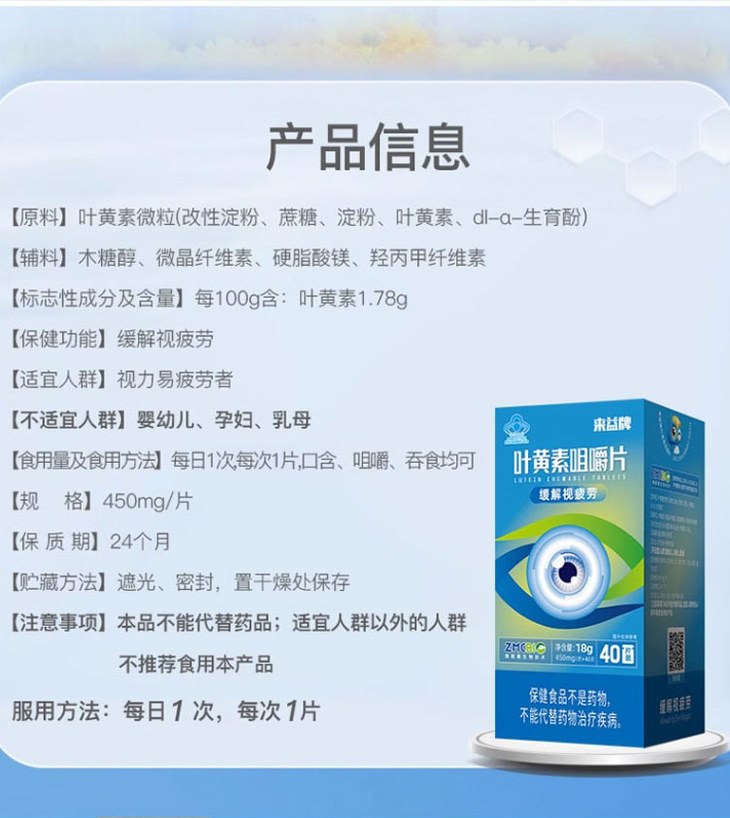 浙江医药公司出品 来益叶黄素咀嚼片 成分靠谱 性价比高