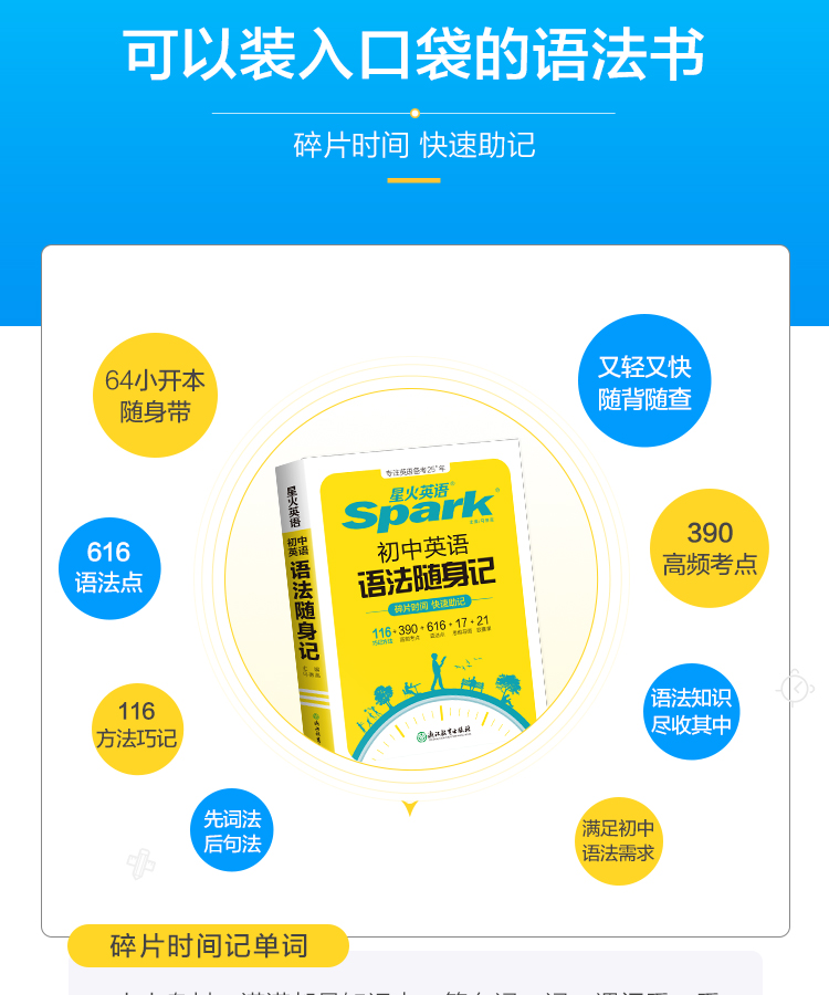 本书计划科学:17章快速掌握初中英语语法;编排系统:先词法,后句法,构建完整语法体系;内容全面:涵盖*所需语法项目,一次全掌握。本书开本小巧,携带方便,讲解精练,既可作为口袋书随时学习,也可作为工具书随时查阅。