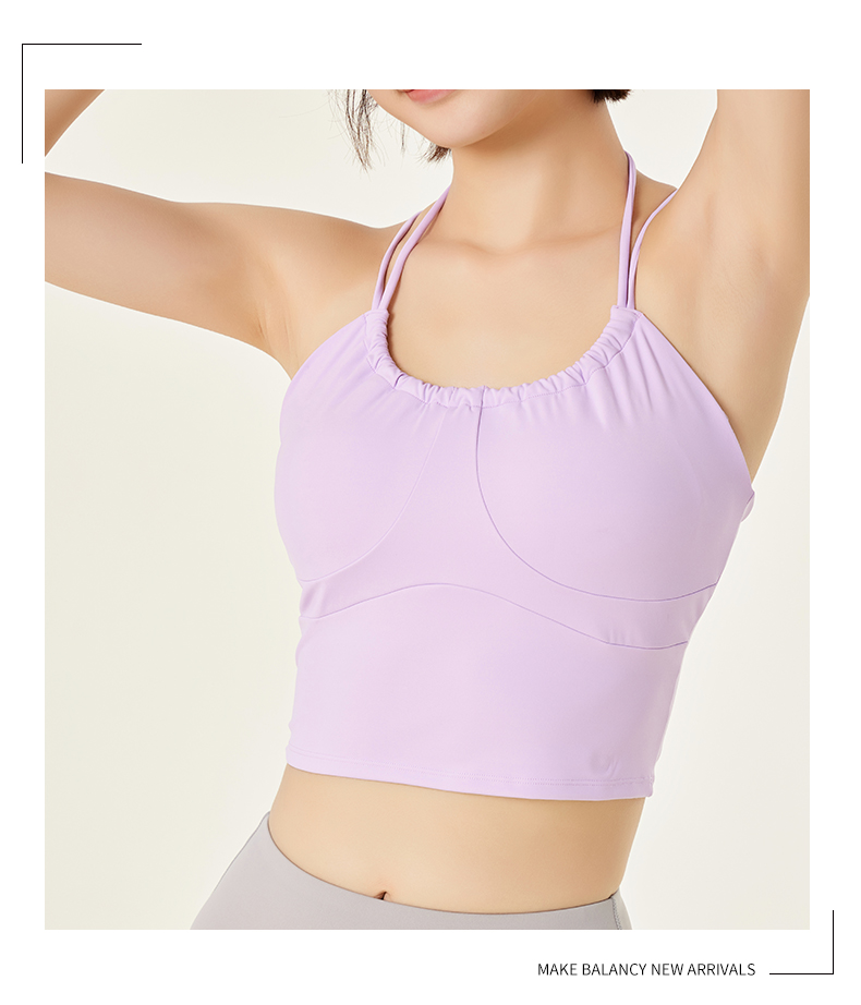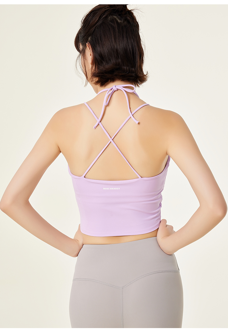 慕柏郦系脖吊带瑜珈背心女夏季运动健身服带垫1870