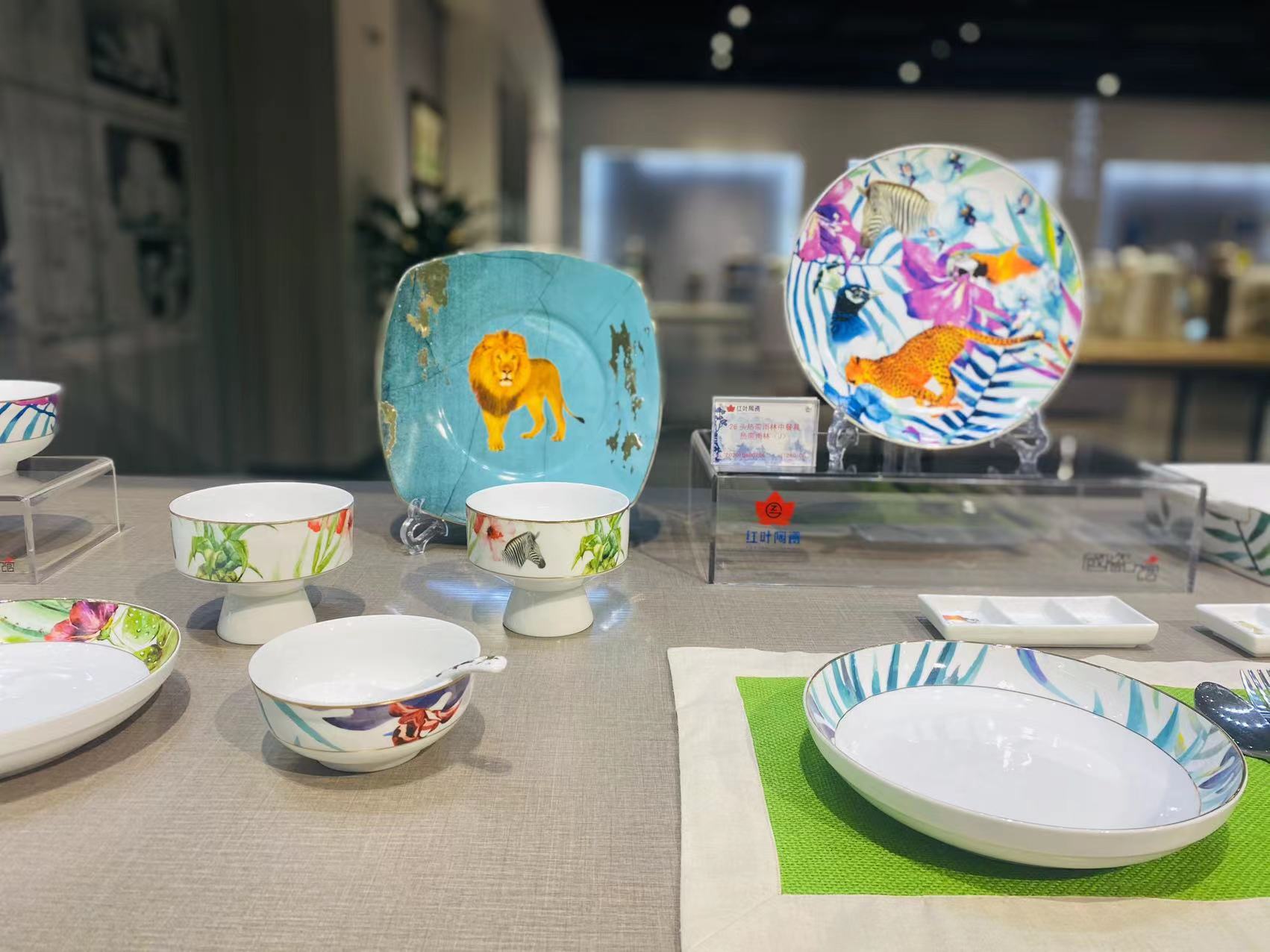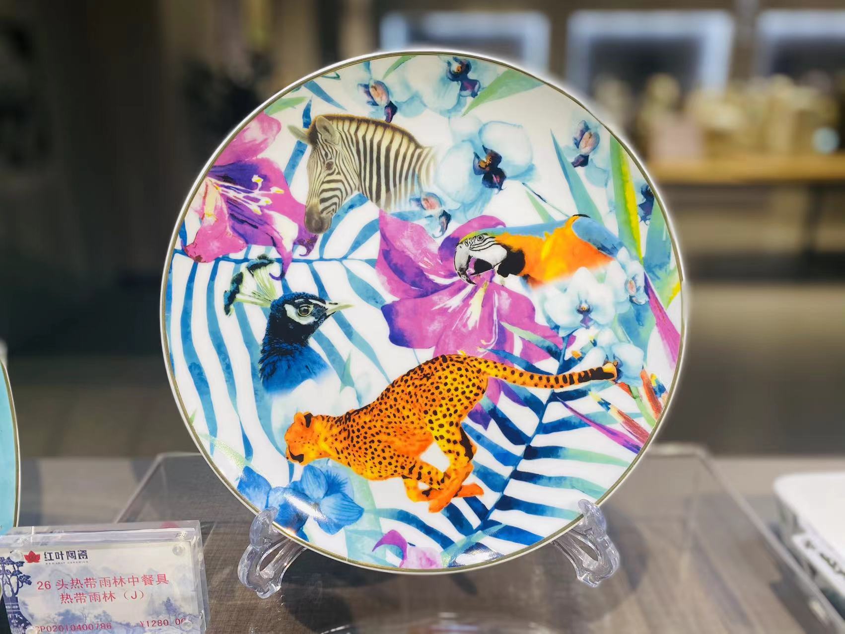 景德镇陶瓷 国瓷红叶 26头热带雨林中餐具