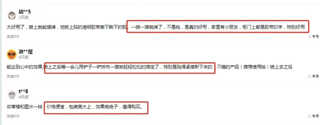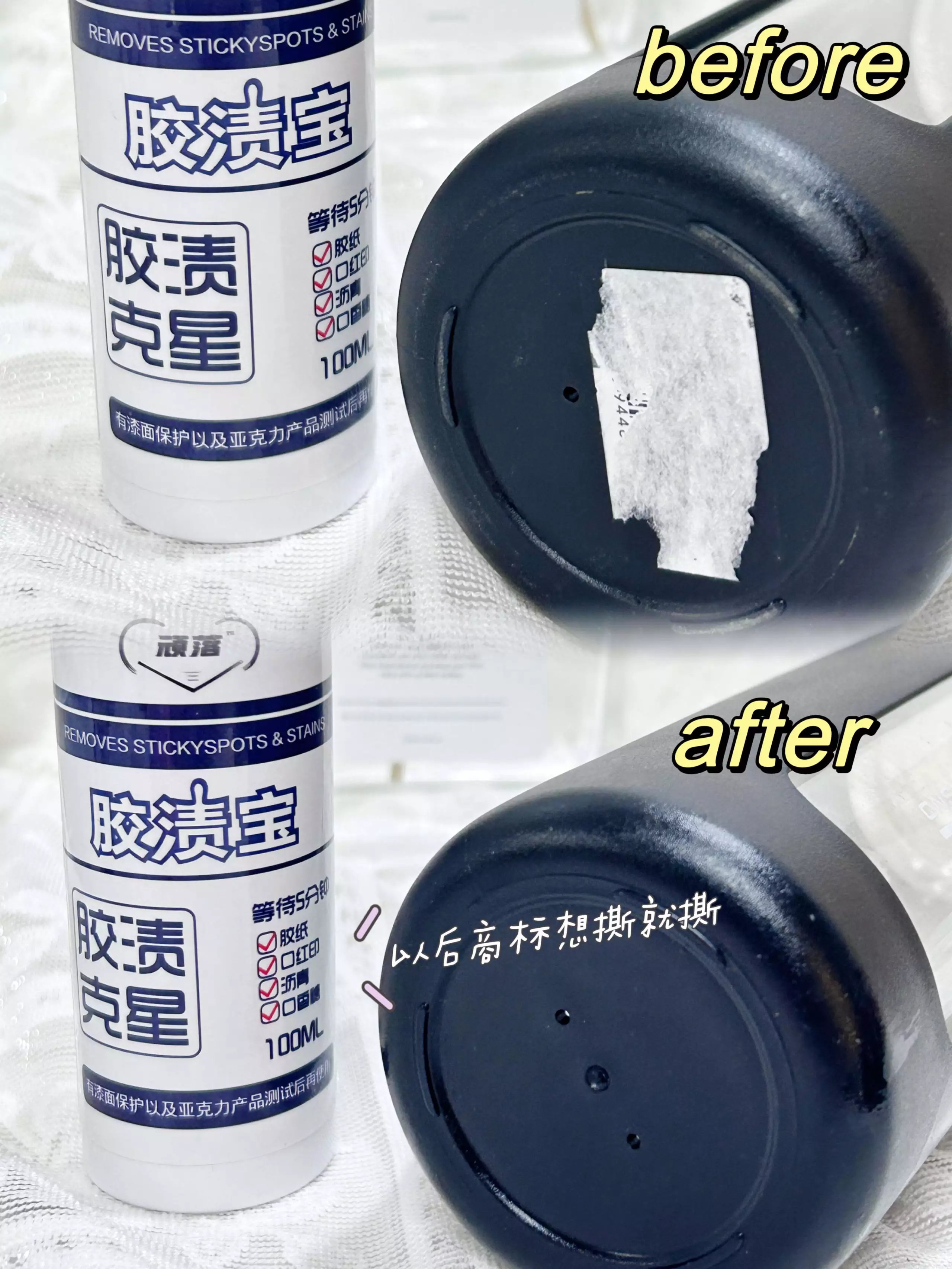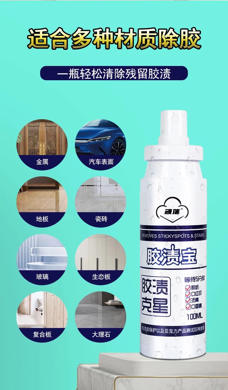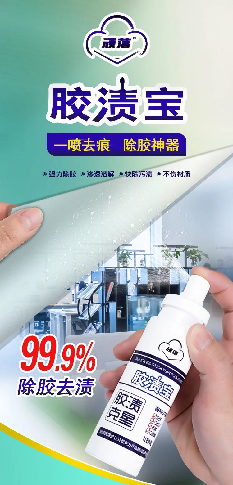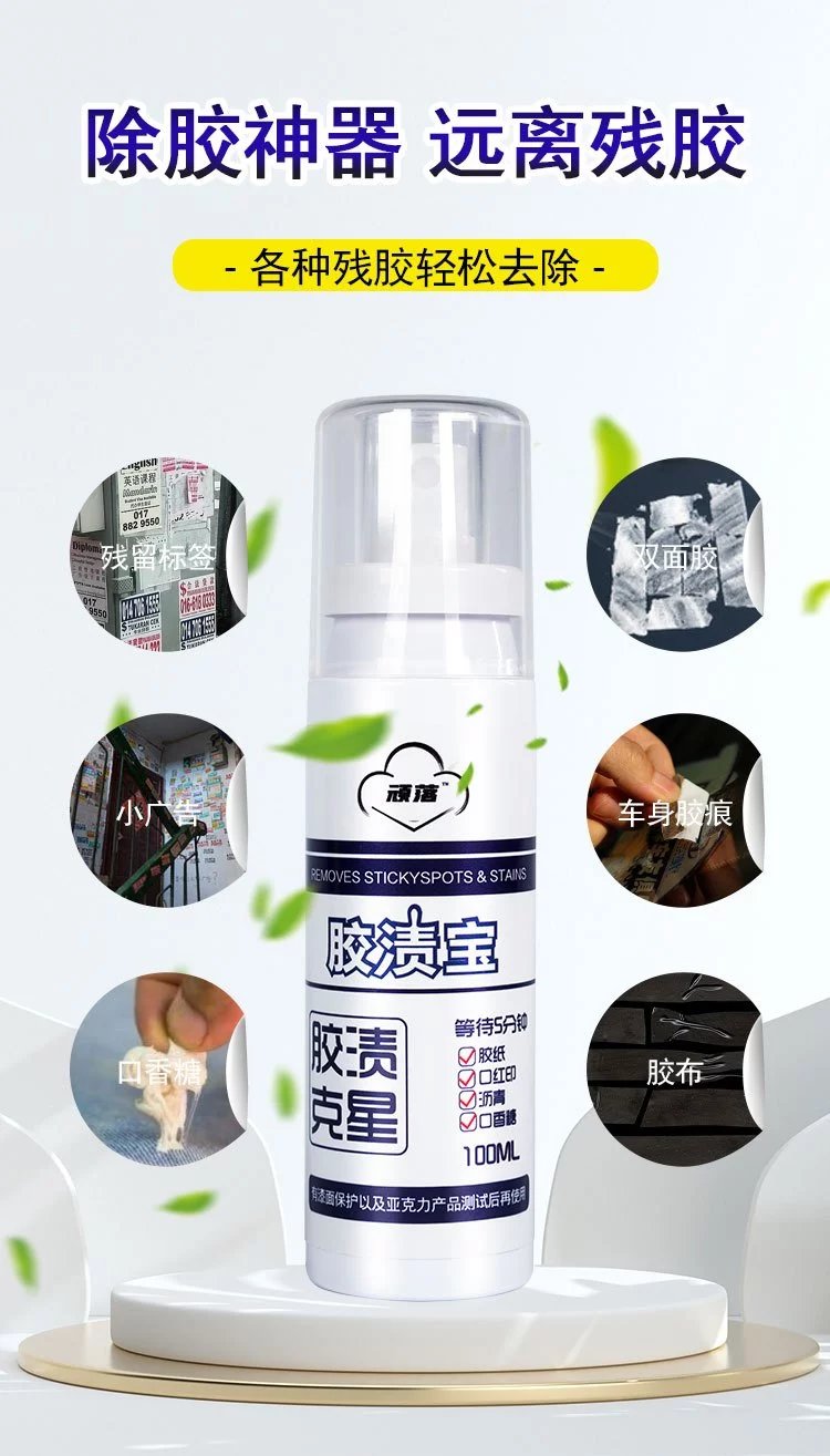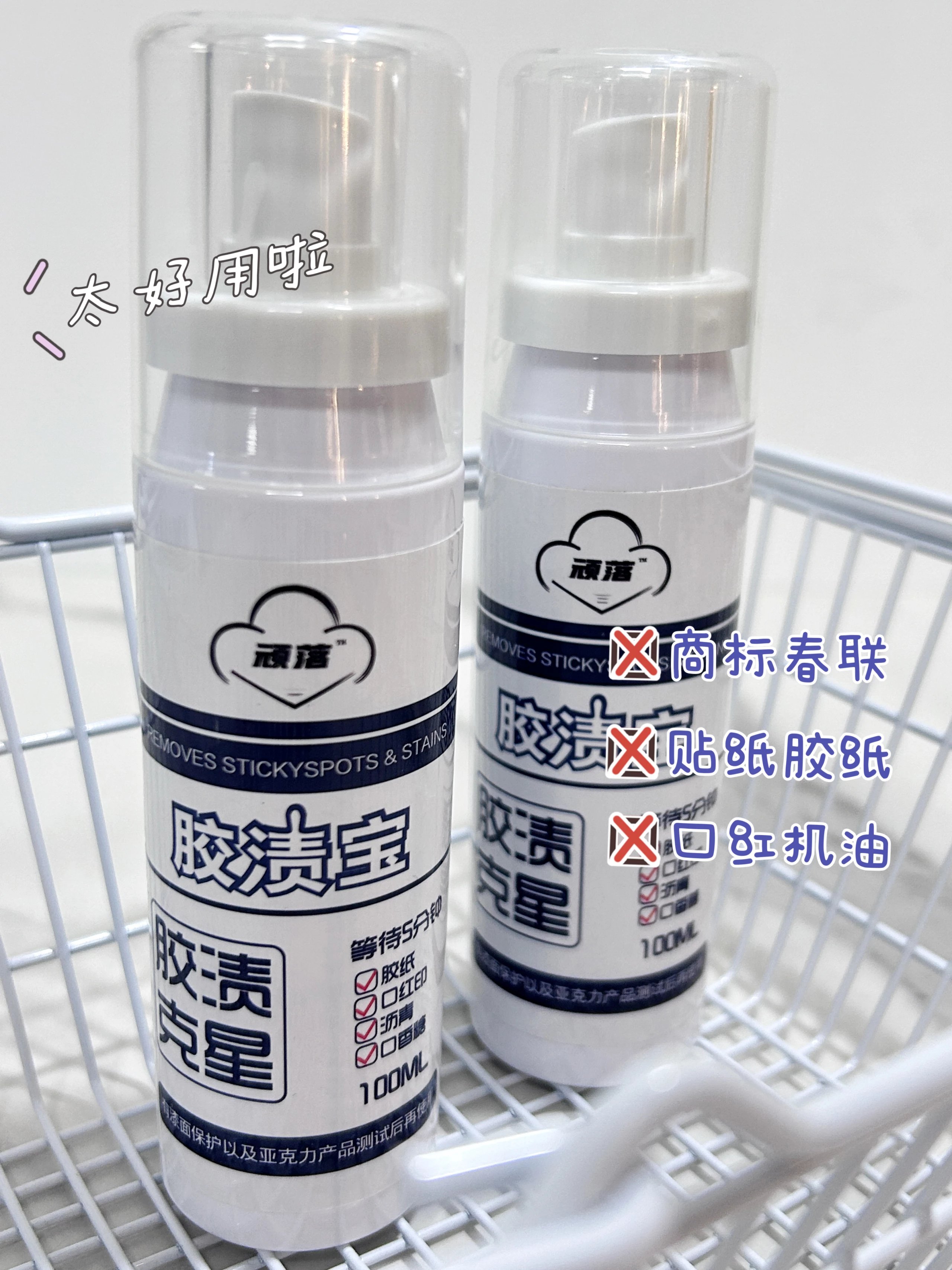 大多数胶渍都能够使用胶渍宝轻松除掉,但一些较顽固的、时间较久的胶渍可能需要多喷几次,等待时间久一点,用塑料片铲一铲会更好清除噢~此类情况非质量问题不支持退货。