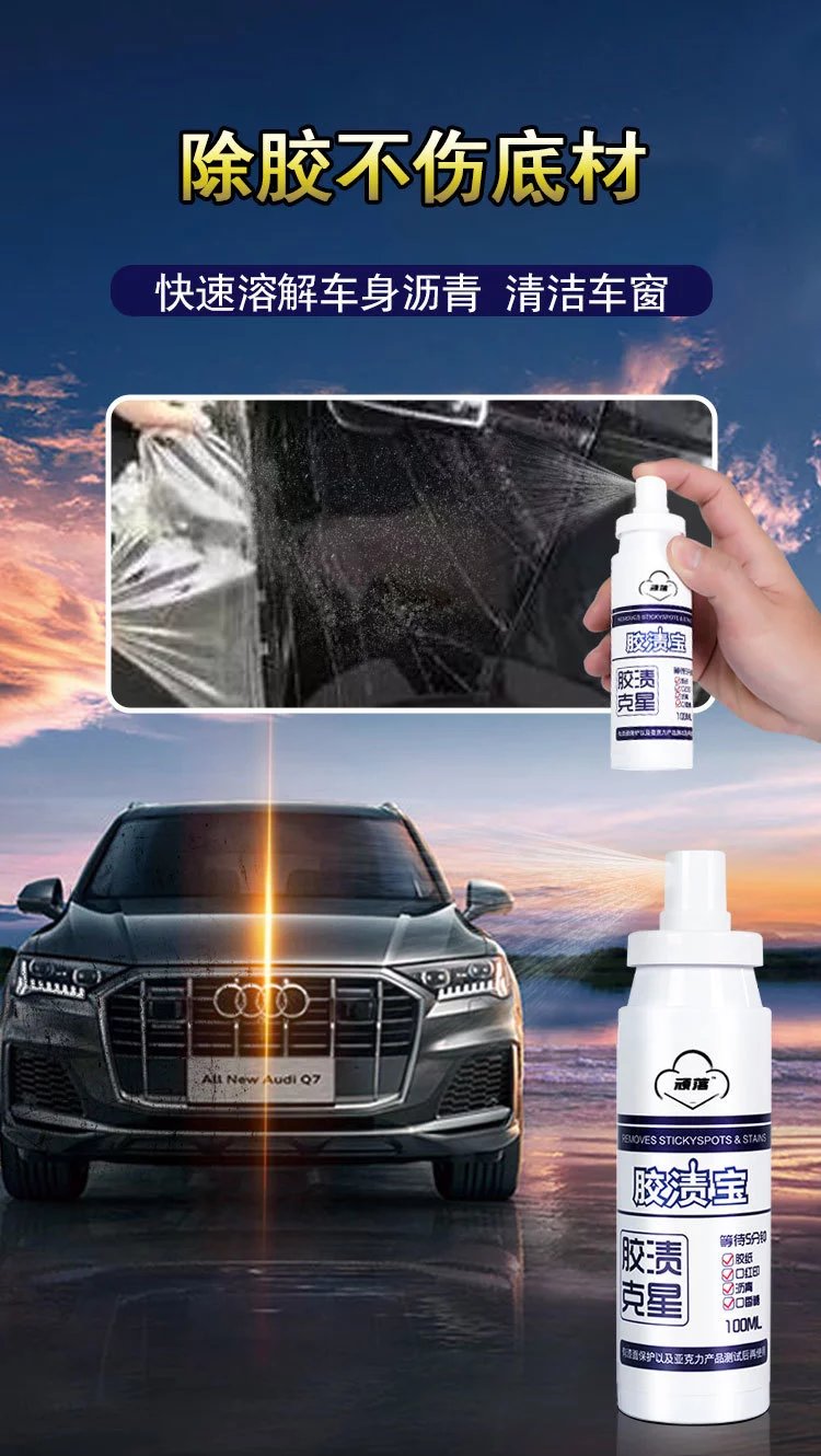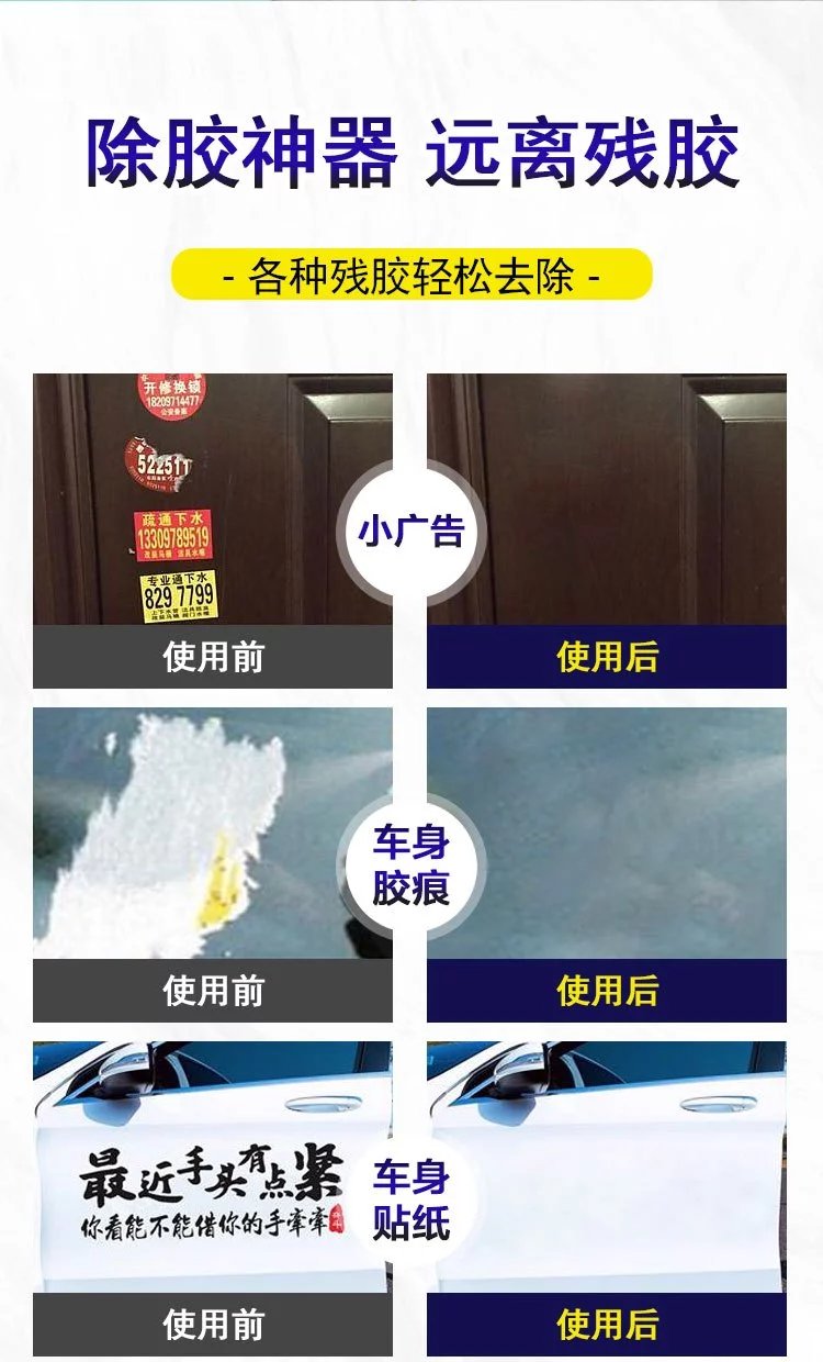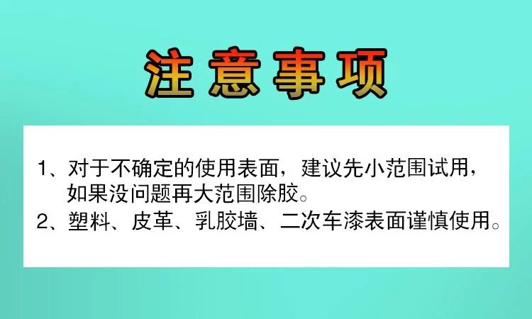 注:对于有漆面保护以及亚克力产品,建议先小范围试用,如果没问题再大范围除胶