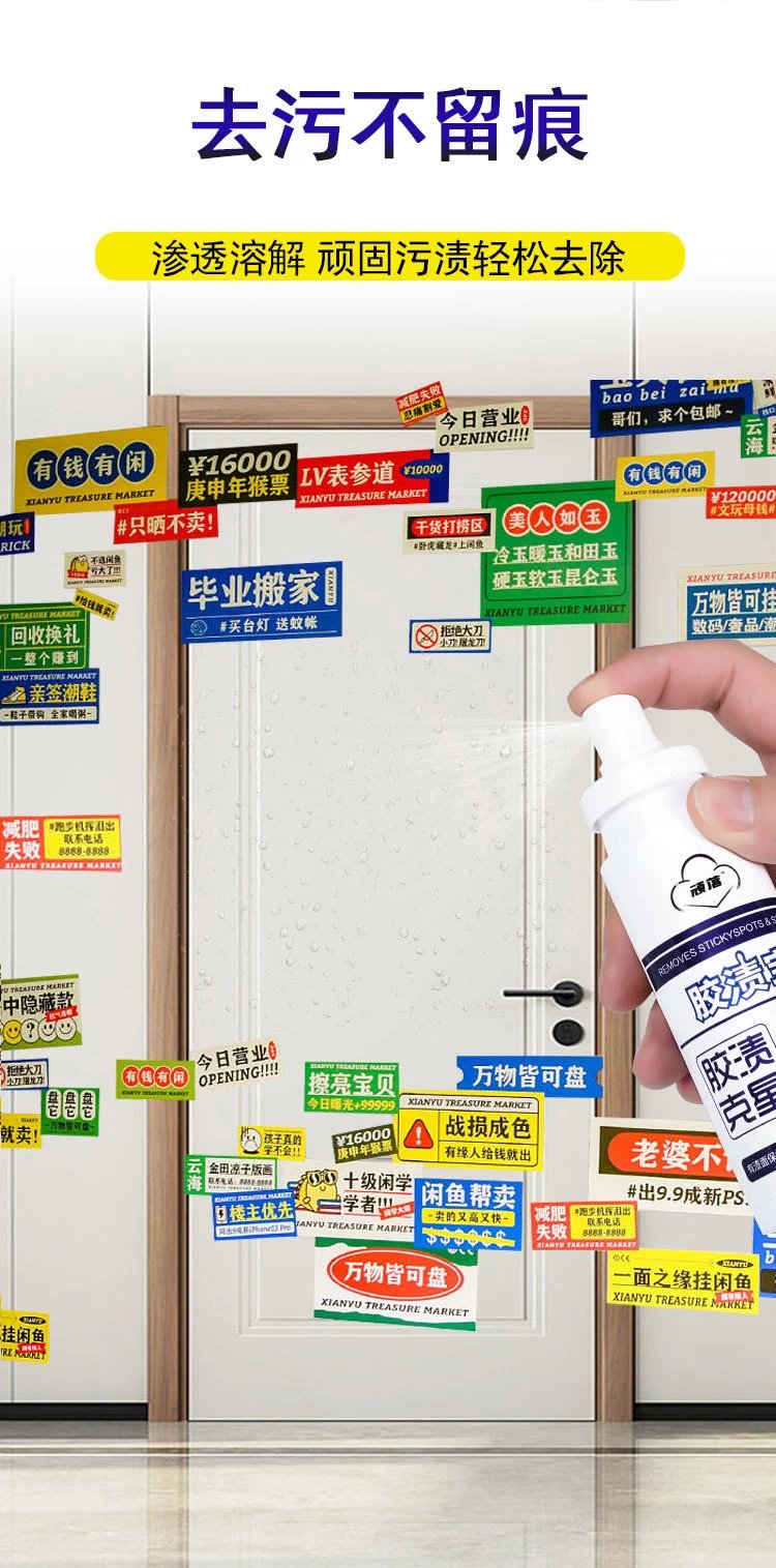 新增加强版!1瓶/3瓶~【顽落胶渍宝】年后必备神器!陈年顽固胶渍克星!家里胶纸贴纸,口红印,沥青,口香糖,机油、车窗车身上的小广告贴纸,一喷一擦超干净~