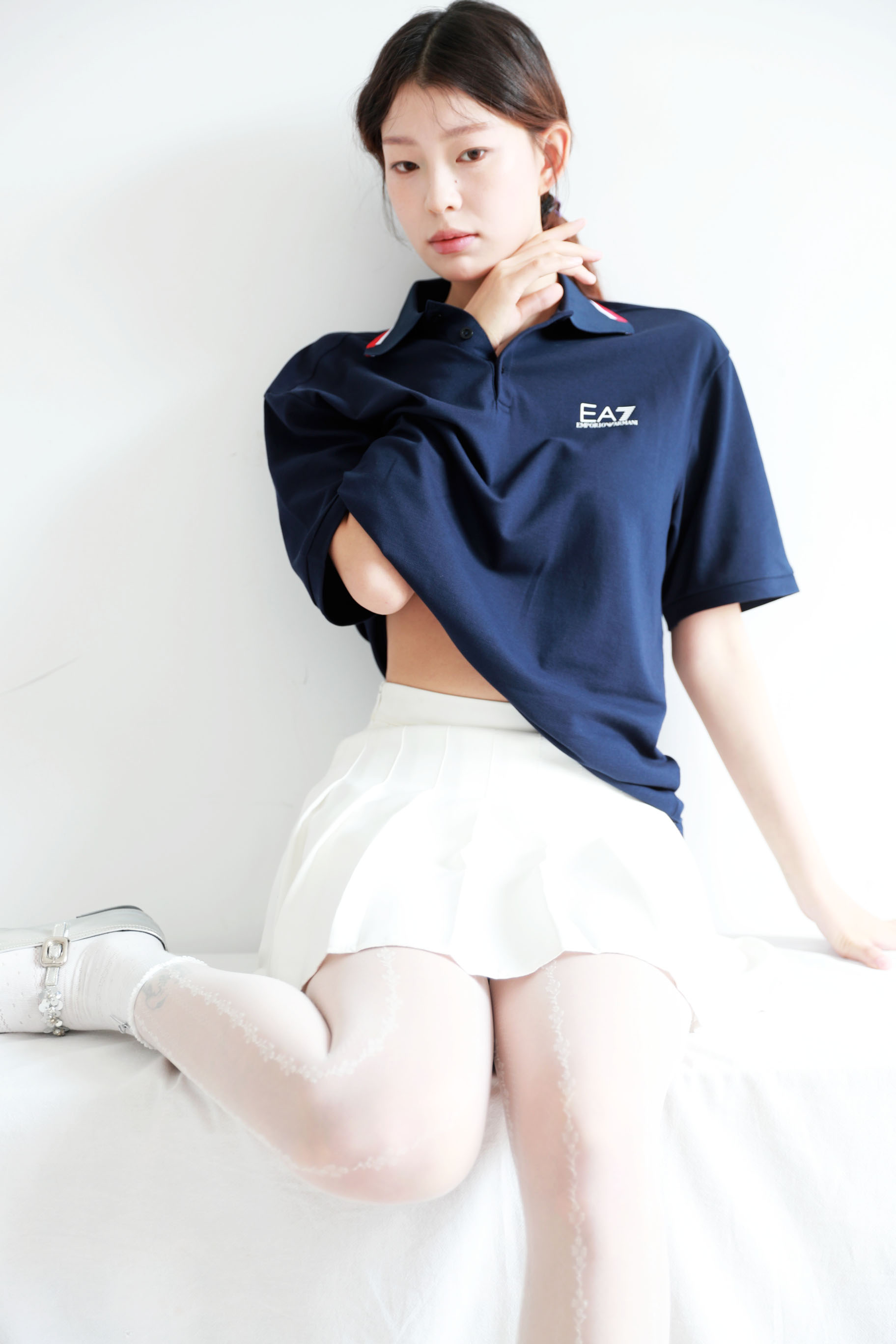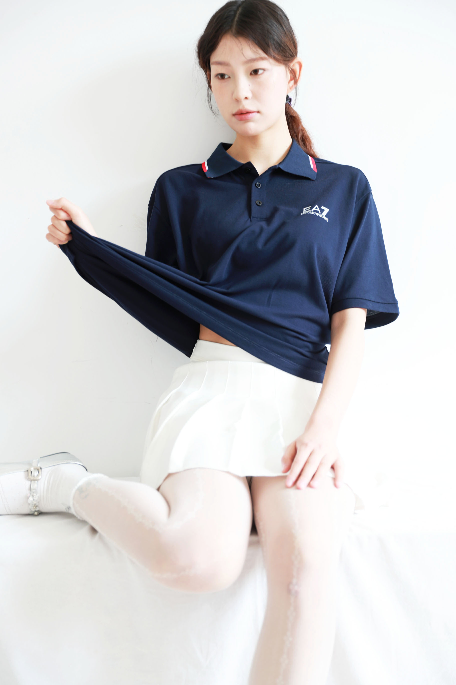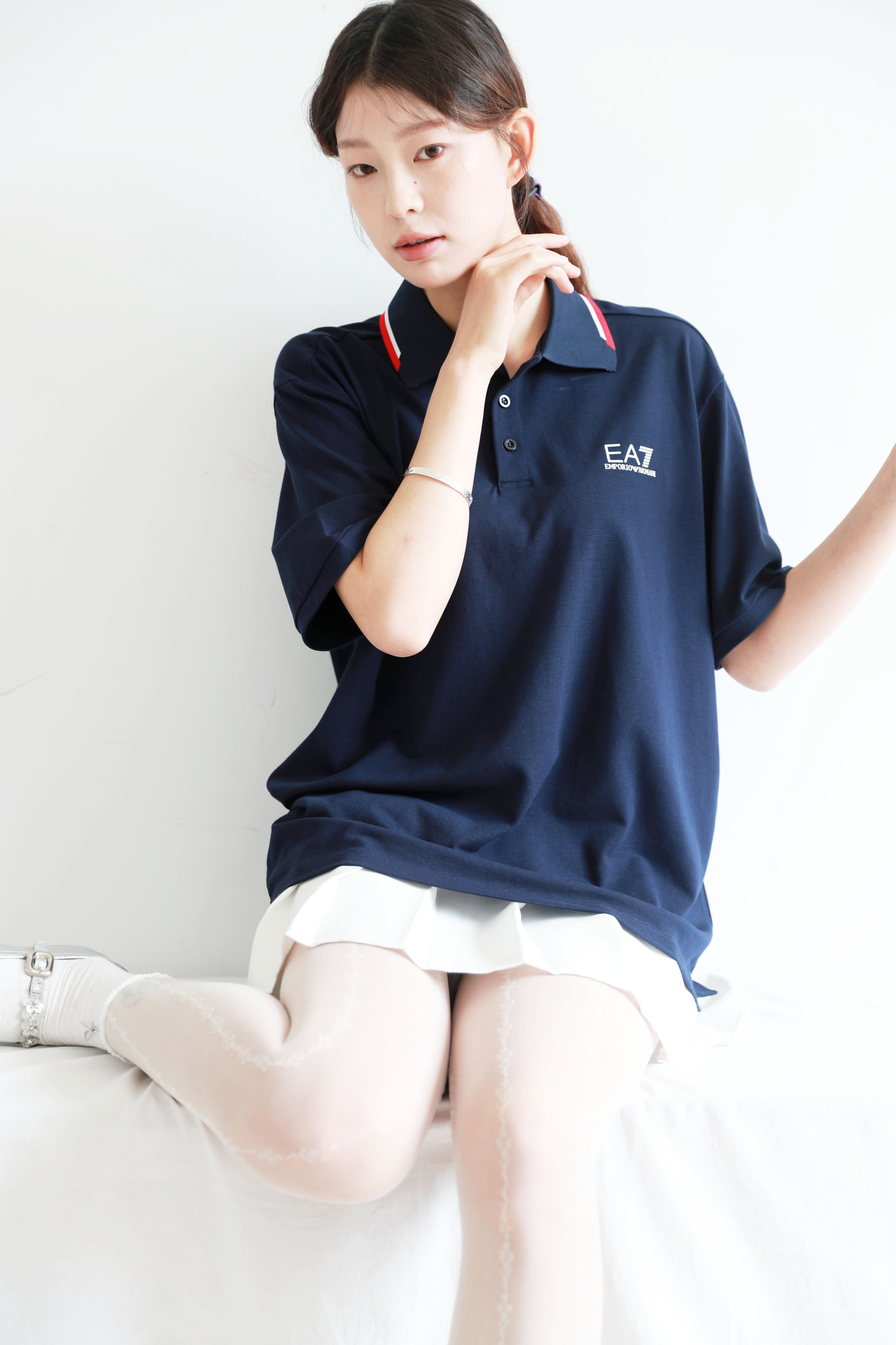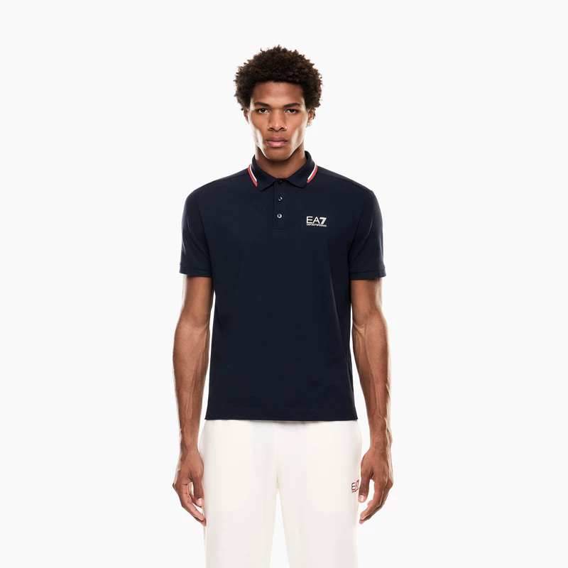 撞色边Polo衫,直接出口。翻领设计胸口字母印花短袖poloE042558